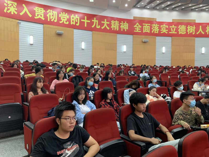 第二天上午汪频老师在教育大楼学术报告厅举办的《乐中学知,行中厚德》的讲座。