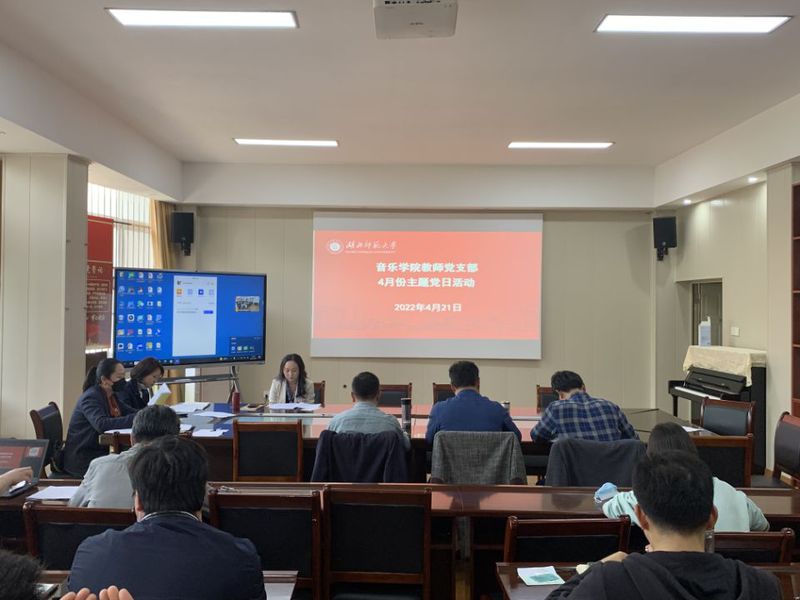 为深入学习习近平新时代中国特色社会主义思想,推进党建引领学校发展,着力促进基层党建工作提质增效,4月21日下午,音乐学院教师党支部全体党员在13311会议室开展了以自我革新谋新篇,勇立潮头开新局”为主题的4月份主题党日活动。活动由教师党支部书记黄芳同志主持。