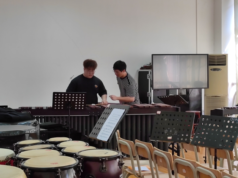 2022年9月12日上午,音乐学院院长周友良教授、副院长李海萌副教授和器乐教研室主任蒲实副教授等教师一同在13301教室听取了黄奕彬老师的《器乐表演五》课程。课堂上,黄老师主要教授了马林巴乐曲-巴赫《F大调练习曲》的视奏与练习。