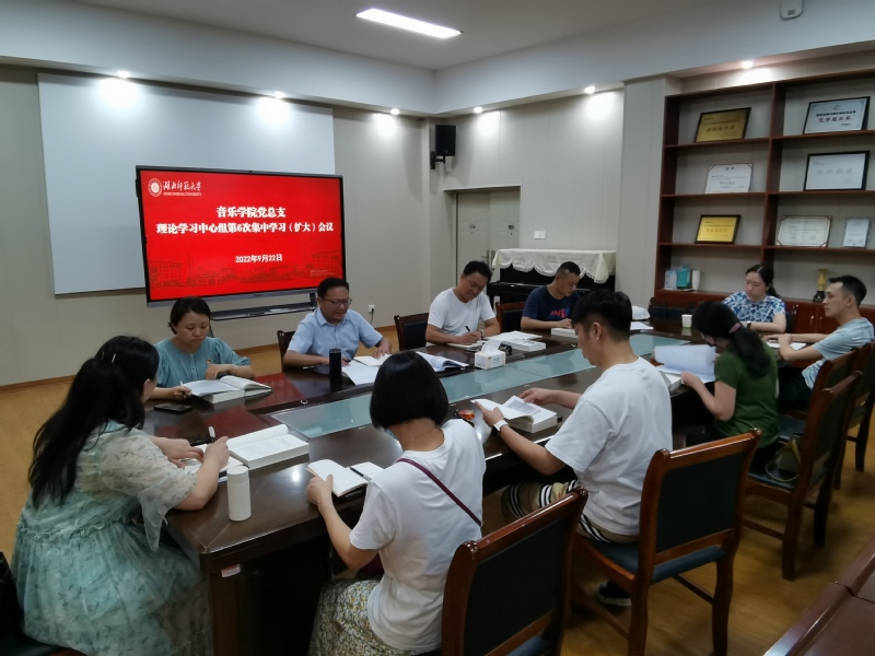 9月22日晚,音乐学院在音乐大楼13311会议室召开党总支理论学习中心组2022年第6次集中学习(扩大)会议。会议由党总支书记陈文斌主持。