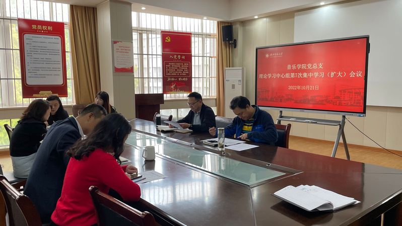 10月21日下午,音乐学院党总支理论学习中心组召开2022年第7次集中学习(扩大)会议,专题学习研讨党的二十大报告。党总支书记陈文斌主持会议。