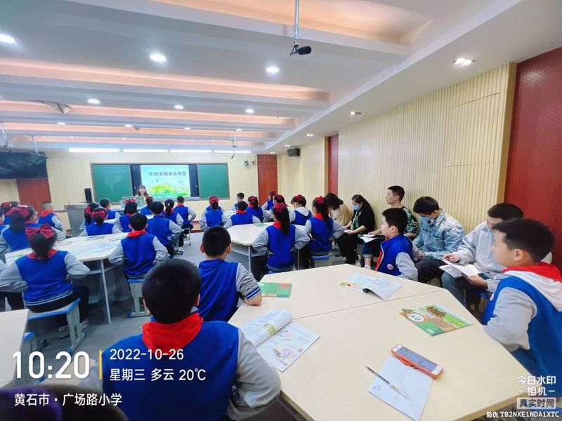 2022年10月26日上午,器乐教研室开展了教学实践周走进小学听课观摩活动。老师们亲身深入黄石市广场路小学音乐课堂,聆听两位一线小学音乐教师的教学。随后徐滢珺、程洁、章江、徐海、黄奕彬五位教师与广场路小学纪校长和两位观摩课的音乐教师就新课标音乐教育,民乐文化宣传,高雅艺术进校园等问题进行了深度访谈交流,并对未来两校之间的长期合作交流达成了共识。