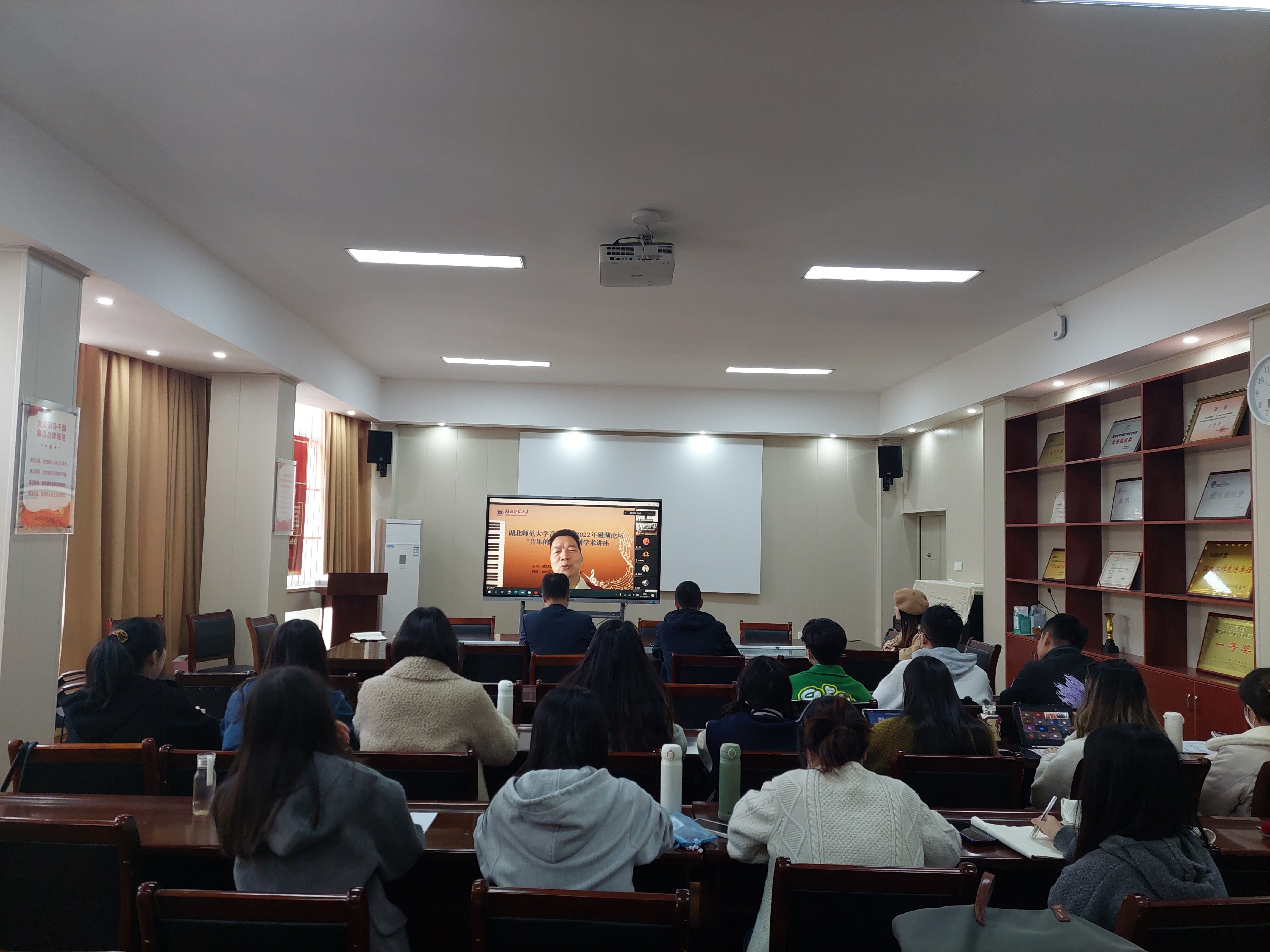 2022年11月17日下午三点,在音乐学院13311会议室,我院邀请中国人民大学艺术学院齐柏平教授以线上线下相结合的方式开展题为《山歌分类研究》的学术讲座,拉开了2022年音乐学院磁湖讲坛“音乐的向度”系列学术讲座的帷幕,周友良院长,李海萌副院长和部分教师,以及2021级、2022级研究生参加聆听讲座。讲座由周友良院长主持。