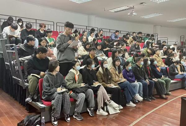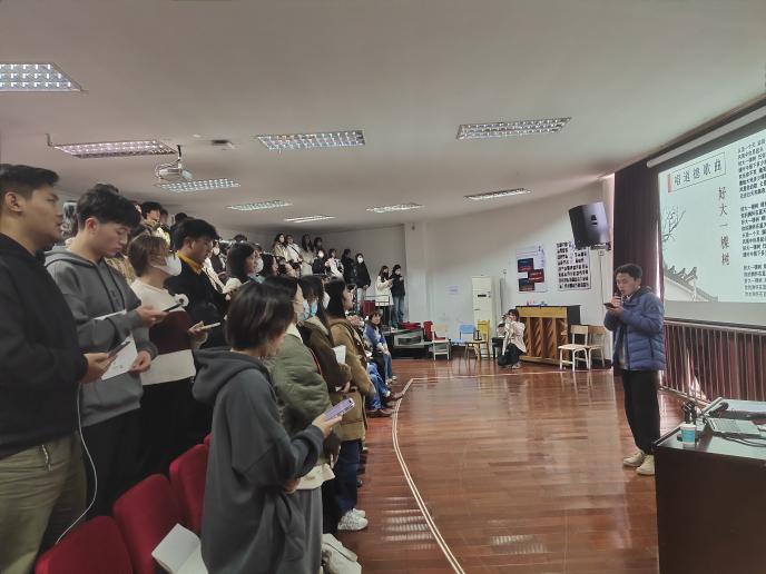 本次活动分为六个环节。第一个环节“看道德短片”,大家观看于漪同志先进事迹短片,感动于这位耄耋老人对于教育事业的挚爱,感动于这位教育智者宽容博大的精神,感动于这位教育前辈的情意深长的教诲。第二个环节“讲道德故事”,由音乐学院岳欣怡同学对于漪同志的事迹进一步宣讲,深入领会于漪同志先进事迹的精神实质,学习全国教书楷模于老师独特的教学风格和先进教育思想。第三个环节“诵师德师魂”,李亦心、徐振同学为大家带来《强师德铸师魂》主题朗诵,共同感受与回忆那些初为人师的记忆与感动,激励教师们坚守初心,为人师表,勇担责任。第四个环节“唱道德歌曲”,由王逸轩同学领唱歌曲《好大一棵树》,浓浓的师生情在艺术的表达中,更直击人心为之动容。第五个环节“悟教育初心”,岁月流转,师情长存,教育是一件需要代代相传的事业。大家认真思考教育的意义,并在纸上写下自己对教育的初心。第六个环节“谈心得体会”,在先进模范的启迪和鼓舞下,大家纷纷表示今后要加强师德师风建设,提高思想政治水平,让德育情怀内化于心、外化于行,汇聚成干事创业的时代洪流,推动伟大教育事业的不断前进。