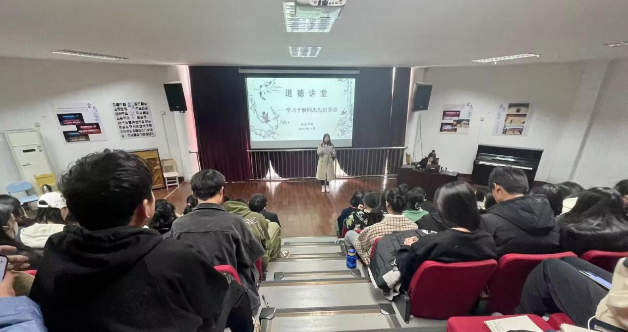 为大力宣传先进模范事迹,涵养师者匠心,滋养学子厚德,激发奋进力量。音乐学院、研究生院、发规处、产学合作处于11月17日下午,在音乐楼13316教室联合举办了以“厚植教育情怀 培育时代新人”为主题的道德讲堂活动。音乐学院教工党员、部分学生党员及研究生院、发规处、产学合作处教师代表参加了此次活动。