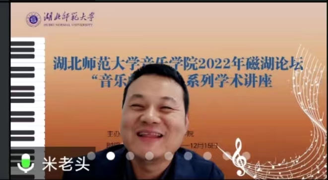 2022年11月23日19点,音乐学院举行2022年磁湖论坛系列讲座第二期,讲座采取线上腾讯会议形式,邀请中央民族大学马克思主义学院副院长、教授苏海舟主讲,题为《新民主主义革命时期中国共产党的重大决策与启示——我们是如何走向胜利的》,我院副院长李海萌主持,音乐学院全体教师、研究生共同参加。