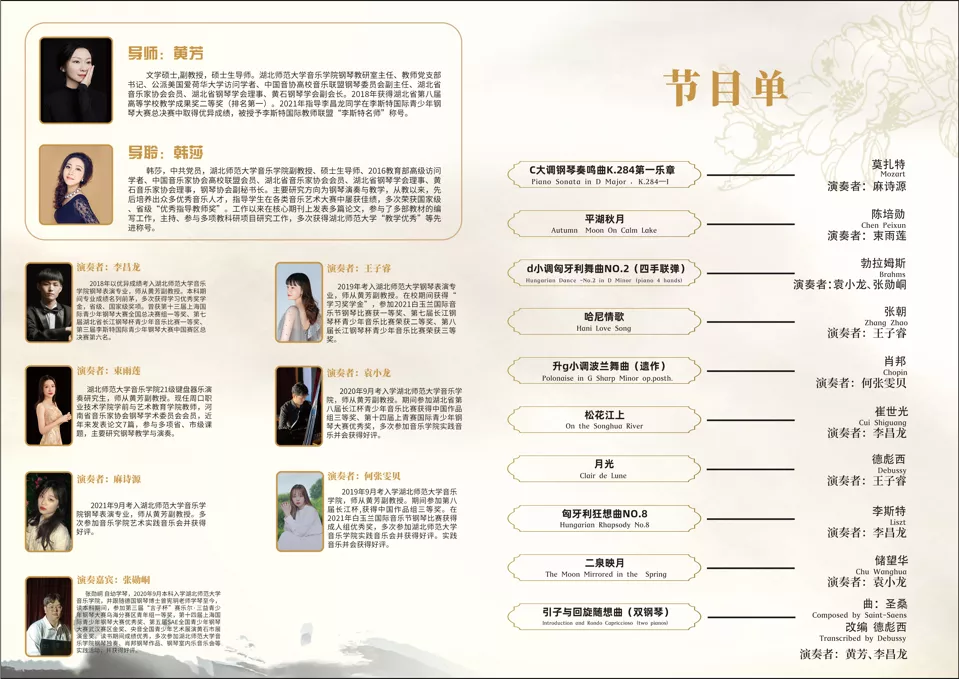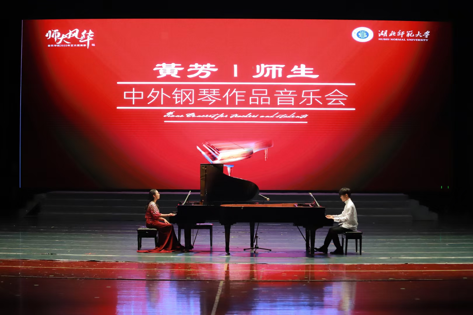 为喜迎二十大,营造浓厚的校园艺术文化氛围,2022年6月6日晚7时,由音乐学院分工会主办,钢琴教研室承办的“师大风华——黄芳师生中外钢琴作品音乐会”在水上莲花大剧院隆重举行,音乐会由钢琴教研室主任、教师党支部书记黄芳副教授携学生共同完成。
