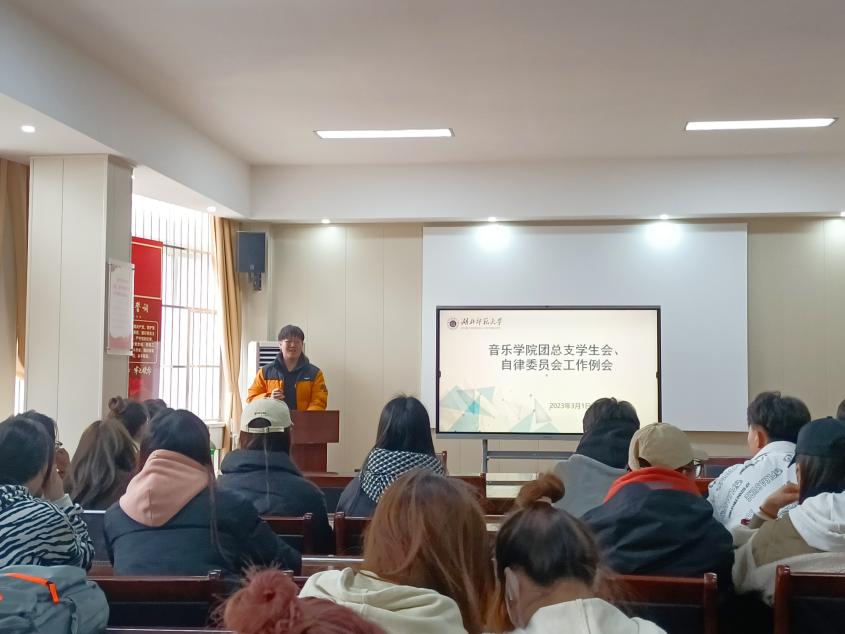 为进一步明确本学期工作目标,引导学生干部勠力同心,鼓足干劲再出发,2023年3月1日,音乐学院13311会议室召开了2023年春季学期团总支学生会、自律委员会工作例会。参加本次会议的有辅导员付思墁和团总支学生会、自律委员会全体干部,秘书部干事汤唯主持。