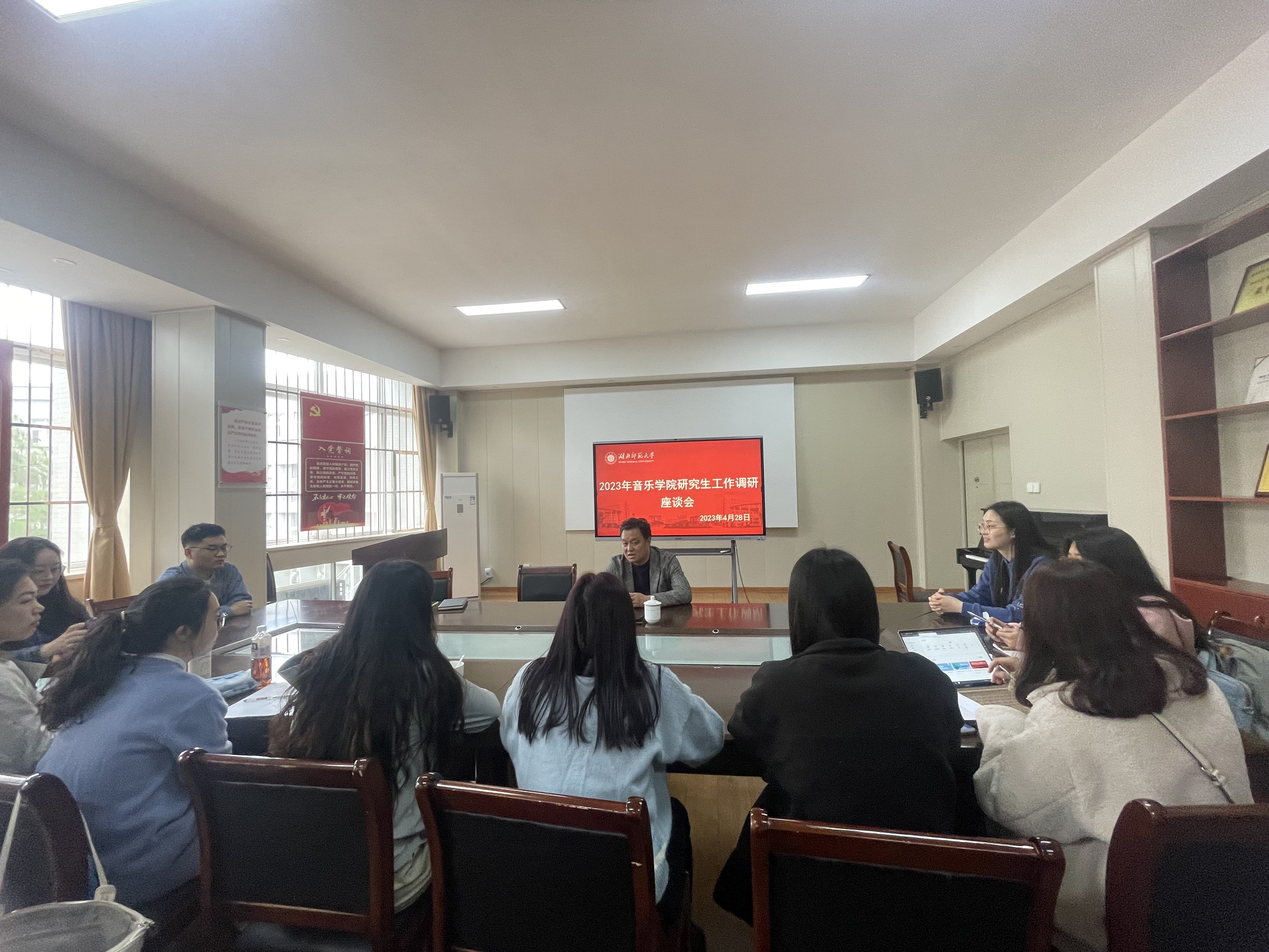 中共中央办公厅印发了《关于在全党大兴调查研究的工作方案》方案指出,在全党大兴调查研究,作为在全党开展的主题教育的重要内容,推动全面建设社会主义现代化国家开好局起好步。根据党中央和学校部署安排,我院积极响应并于4月28日周五上午10:00召开研究生工作调研座谈会,倾听研究生教育发展需求、不断提升研究生就学体验。我院院长周友良教授、教学秘书和全体在校研究生参加了此次座谈会。