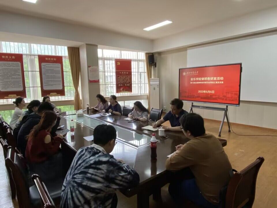 4月26日-30日,“第六届全国钢琴教学研讨会”在宁波大学举行,韩莎、宋晶两位老师参加了这次研讨会。5月5日下午,钢琴教研室全体教师在音乐学院会议室开展教研室活动,两位老师将参会的所见所闻所感所想分享给大家,老师们就此进行了热烈的讨论,音乐学院周友良教授应邀参加了会议。