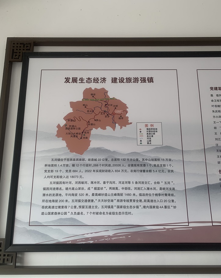 田野作业小组首先来到五河镇镇政府,从行政部门的政策措施方面先总体了解到五河镇对于岳西高腔这个国家级非物质文化遗产的规划与措施。之后我们从镇政府的民政办公室了解到五河镇比较活跃的剧社,主要集中在潜水五河镇段附近的沙岭村、五河村、河南村,每个村都有高腔剧社,规模有大有小。同时,田野作业小组也与办公室工作人员交流了各村的大概情况和主要的岳西高腔艺人、剧社管理者。