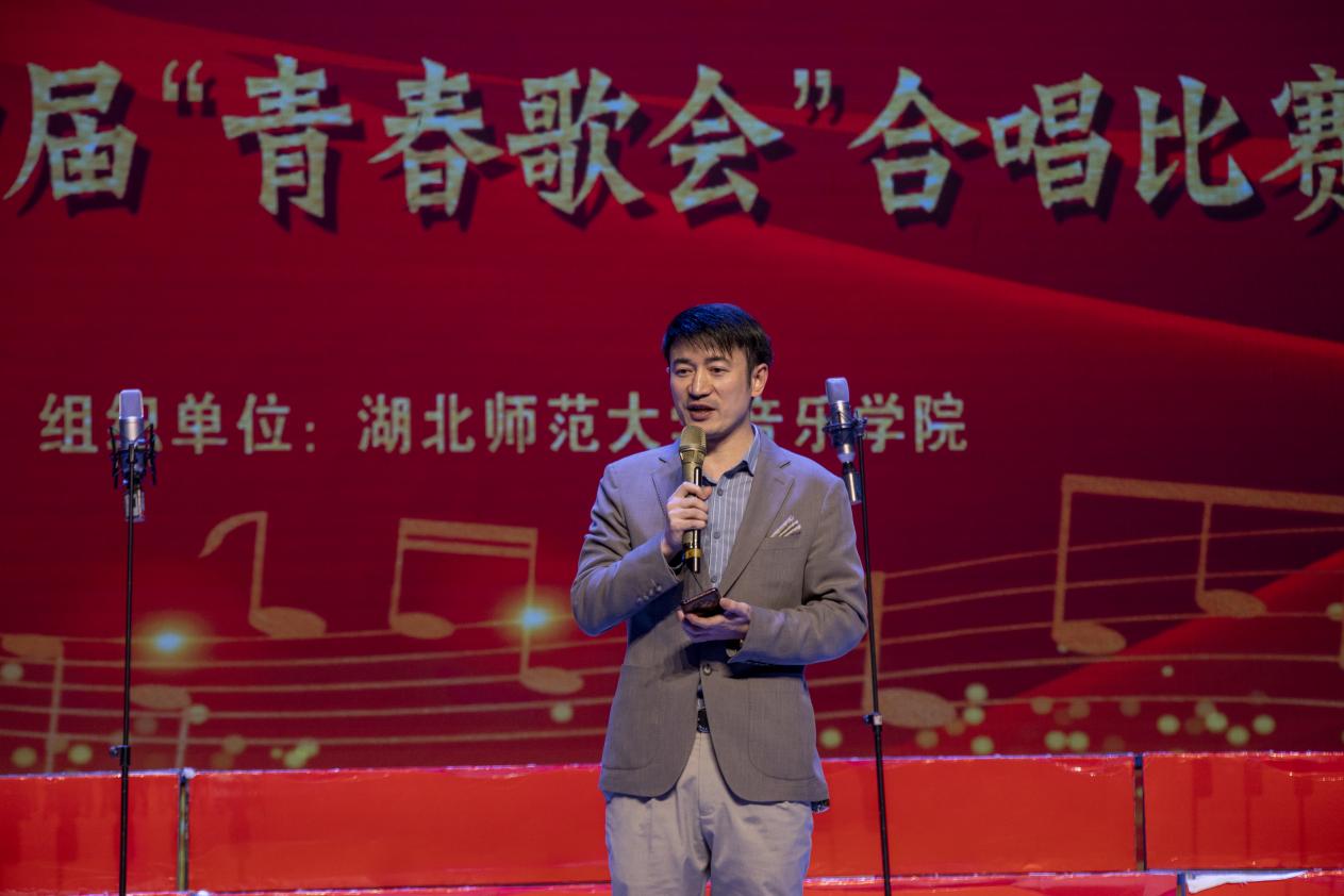 最后,邹少鹏老师进行业点评,他表示,今天参加比赛的合唱班级在音色统一和融合方面下了很大功夫,大家对作品处理形式新颖、情感真挚,一部分参赛队伍还加入了诗歌朗诵、器乐演奏、戏曲演唱、情景表演等环节,形式非常多样化。我也能感觉到大家歌声背后承载了很多音乐艺术以外的东西,通过合唱这种载体,我真切地感受到了湖师学子的家国情怀,这令我备受感动。