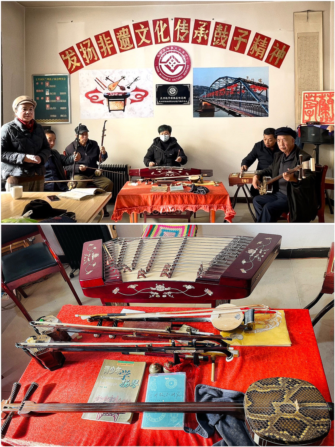 抵达目的地时,艺人们正在奏唱鼓子经典唱段《草船借箭》,一杯茶,一声腔,应乐而歌,兰州鼓子已然成为兰州人生命中的一部分,农忙外的时光,鼓子不仅为生活增添了色彩,更是成为了艺人们心灵的慰藉与寄托。眼泛泪光般的演唱,传诵的不仅是文化,更像是传唱者的时光机,放映半生的苦与乐,艺人们将自身与鼓子紧密结合,零下3度的气温依旧热血沸腾。极简的形式却是深入人心。