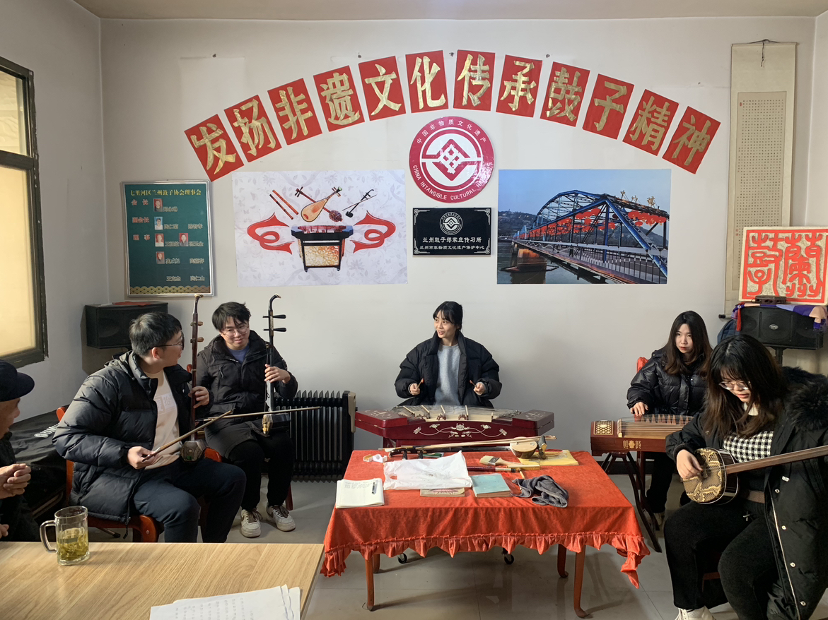 小组成员积极参与了鼓子表演的互动环节。成为了一段珍贵的记忆。这间热乎乎的小房间,我们看见了文化的传承,血脉的延续,年仅14岁的 莫瑜翰小朋友,唱起鼓子来过之而无不及,既有年轻一代的朝气,更有老一辈传承的故事感,他的背后是兰州鼓子未来发展的蓬勃,更是我们民族文化崛起的华章。