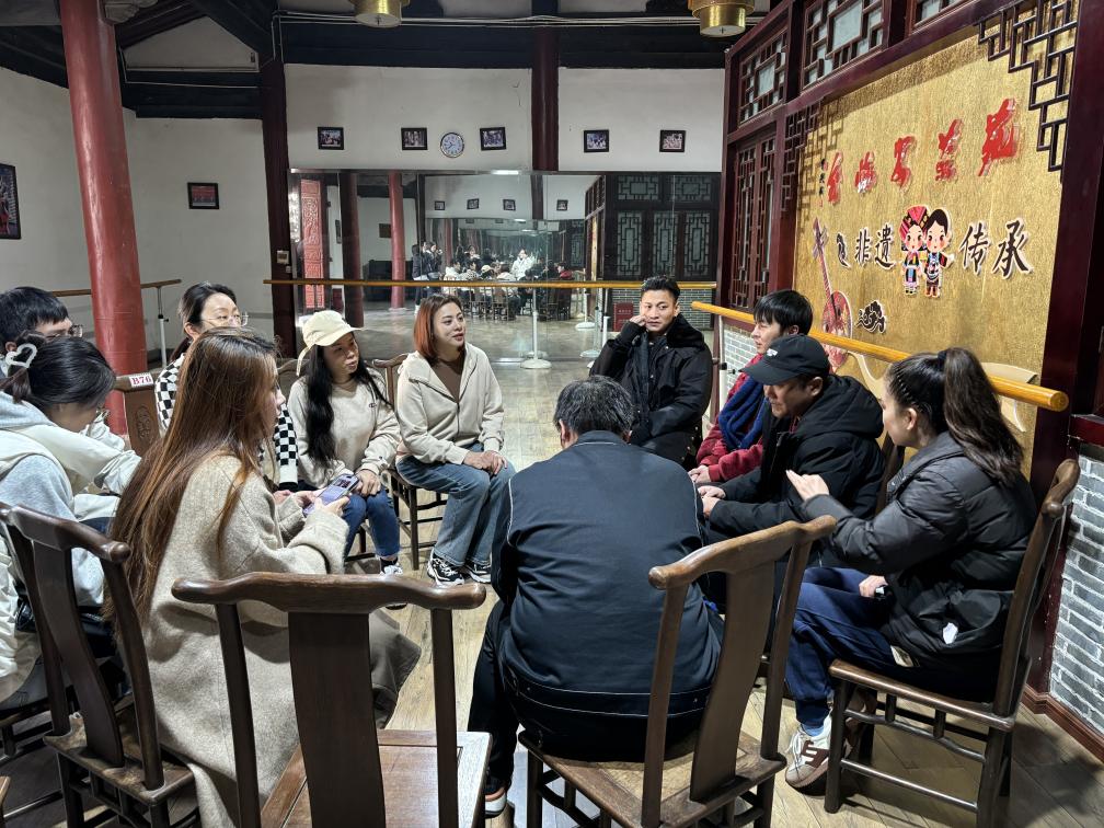 11月30日上午,田野作业团队们前往建水小调剧场,慢节奏的生活和淳朴的民风让生活像倒退了30年,穿过广场、走过长道就来到了剧场门口,建水小调的传承人和表演老师们已经等候在门口,从与艺人们的交谈中得知,建水小调是汉、彝民族文化融合的产物,是彝汉两族人民文化交融的结晶。