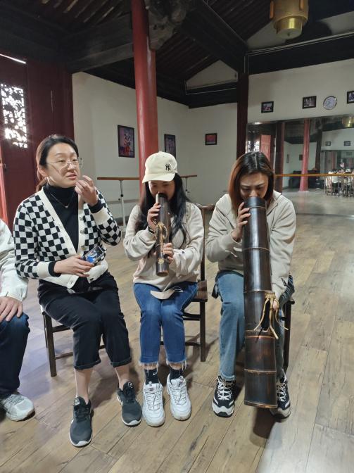 张老师跟我们介绍,他们这个团有彝族、哈尼族、壮族、汉族各民族的演员,平时的工作就是演出和排练,也会进行游街演出。在表达形式和唱腔上有所变化。分别给我们介绍建水小调中,滇南彝族四大腔的《沙莜腔》《海菜腔》《五三腔》《四腔》《沙莜腔》,并且一一给我们演唱,讲解其区别。