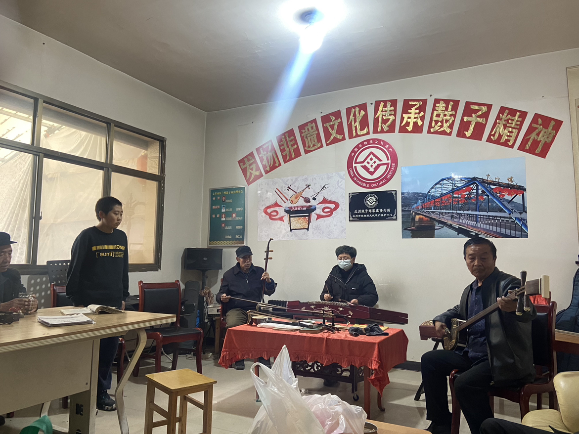 小组成员积极参与了鼓子表演的互动环节。成为了一段珍贵的记忆。这间热乎乎的小房间,我们看见了文化的传承,血脉的延续,年仅14岁的 莫瑜翰小朋友,唱起鼓子来过之而无不及,既有年轻一代的朝气,更有老一辈传承的故事感,他的背后是兰州鼓子未来发展的蓬勃,更是我们民族文化崛起的华章。