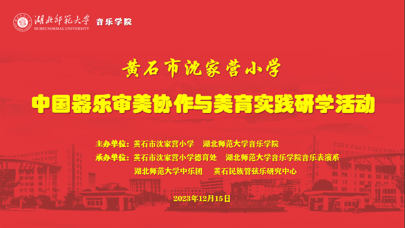党的二十大报告强调:“育人的根本在于立德。”习近平总书记指出:“要把立德树人的成效作为检验学校一切工作的根本标准......”在中华优秀传统文化中,人有八德:“孝、悌、忠、信、礼、义、廉、耻;”乐有八音:“金、石、丝、竹、匏、土、革、木 ”;为落实“立德树人”,传承中华优秀传统文化,践行高等师范院校以“学生中心、产出导向、持续改进”的核心教育理念,推进大学与基础教育美育功能一体化,提升小学生音乐审美与协作能力,黄石市沈家营小学和伟德国际1946bv音乐学院联合主办,开展本次主题为“八音传八德”的“中国器乐审美协作美育实践研学活动“。