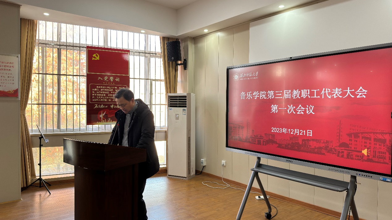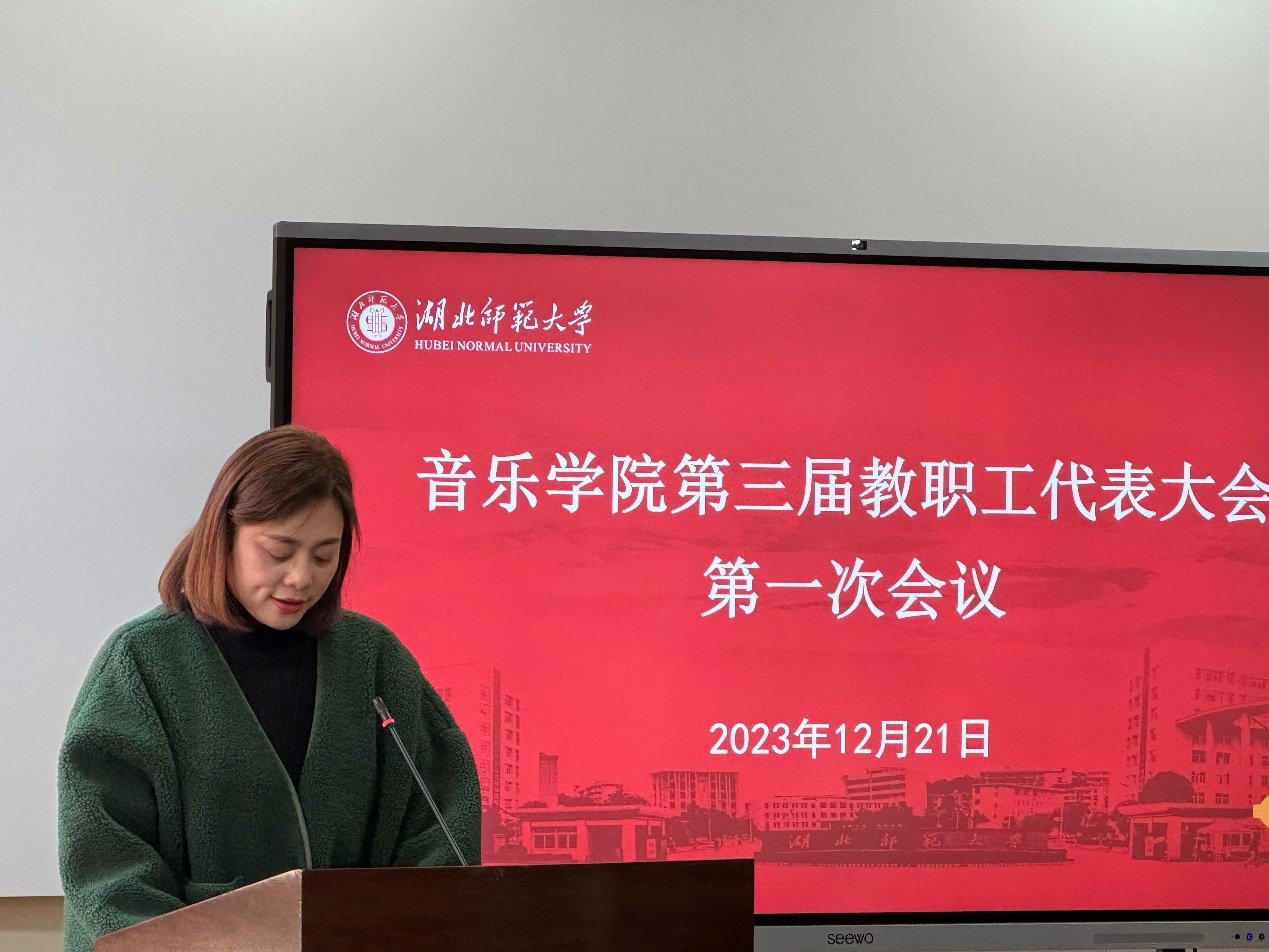 12月21日下午15:30音乐学院第三届教代会第一次会议在音乐学院党员活动室召开,会议由学院党委副书记、分工会主席杨娇主持,音乐学院班子成员、全体教职工参会。