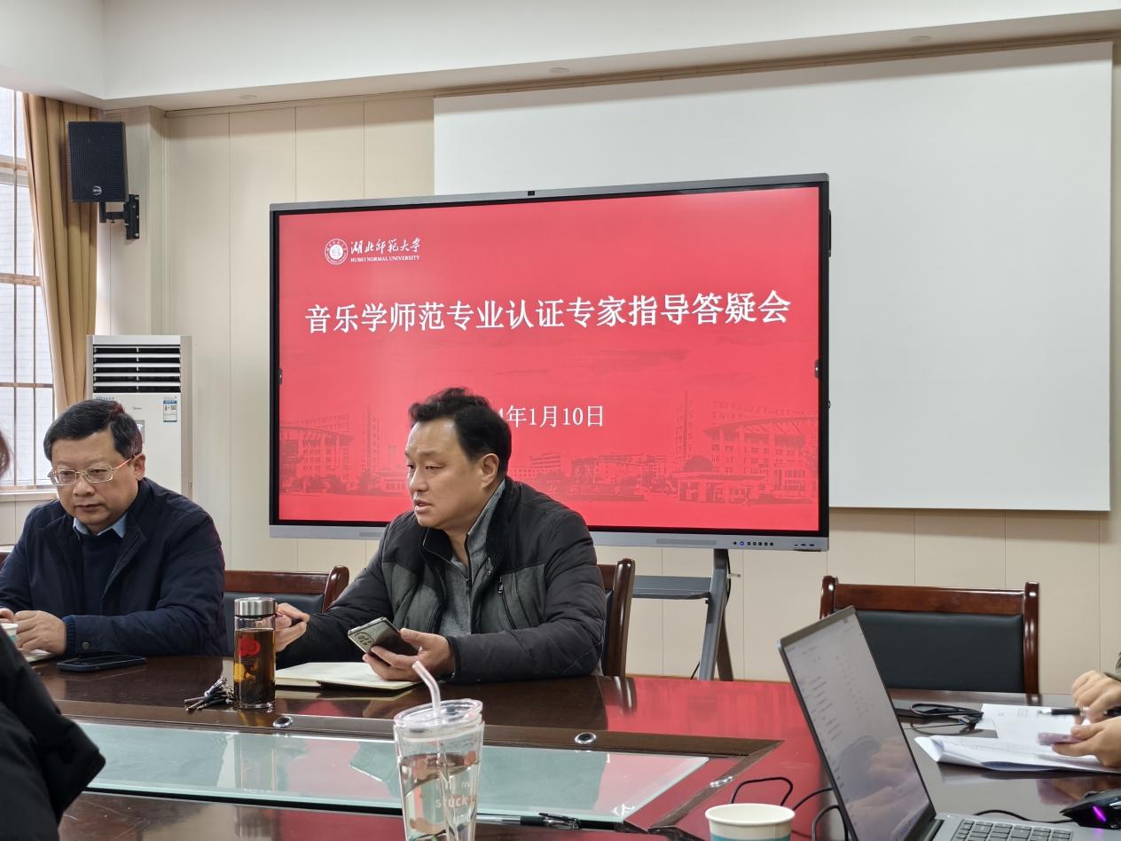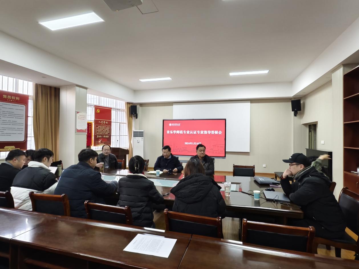 2024年1月10日,音乐学院在13311会议室开展音乐学师范专业认证专家指导答疑会。评估中心主任秦海涛应邀指导工作,音乐学院崔永辉书记、周友良院长、黄芳副院长以及全体认证负责人参加了会议。