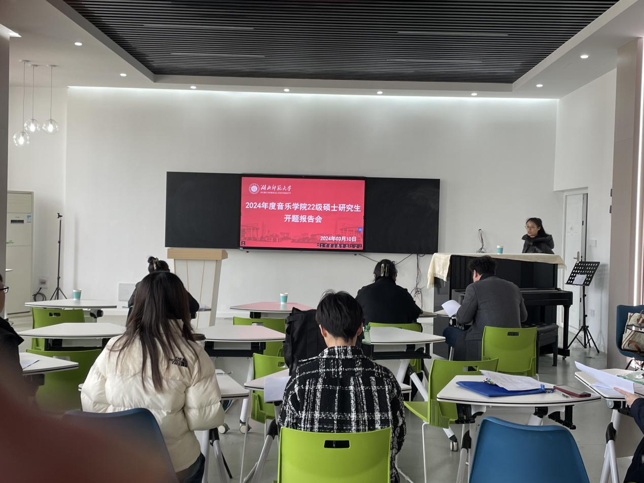为保障硕士研究生培养质量,提升学位论文品质,2024年3月10日(周日)下午14:30,音乐学院2022级硕士研究生毕业论文开题报告会分三组举行,相关教师组成专家组出席报告会,各专业同学在会上进行汇报,部分低年级研究生参加旁听学习。