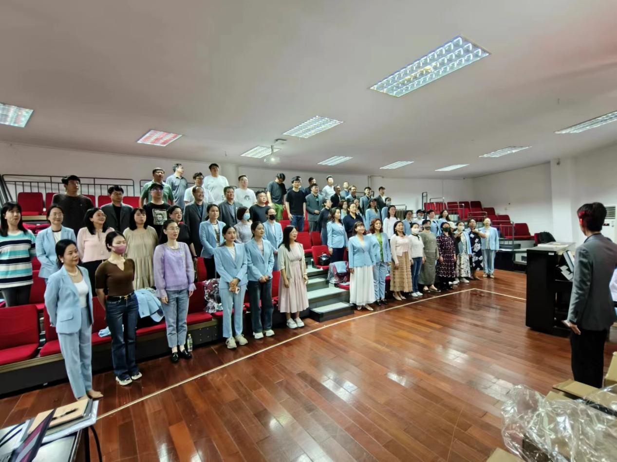 活动前,院长周友良教授发表了热情洋溢的讲话,深情回顾学院办学历程,总结分享办学精神,致敬教职工的辛苦付出,祝贺大家节日快乐。全体教职工集体演唱《歌唱祖国》,用最炙热的情怀歌唱出华丽的爱国乐章,现场多位老师献唱了《幸福中国一起走》《共圆中国梦》《唱支山歌给党听》《没有共产党就没有新中国》《我们的中国梦》等歌曲,歌声高亢激昂,旋律婉转悠扬。活动尾声,学院党委书记崔永辉勉励大家发扬建党精神、教育家精神,崇德尚艺、扎实工作,和合共生、砥砺前行,认真落实年度工作任务,促进学院高质量发展。