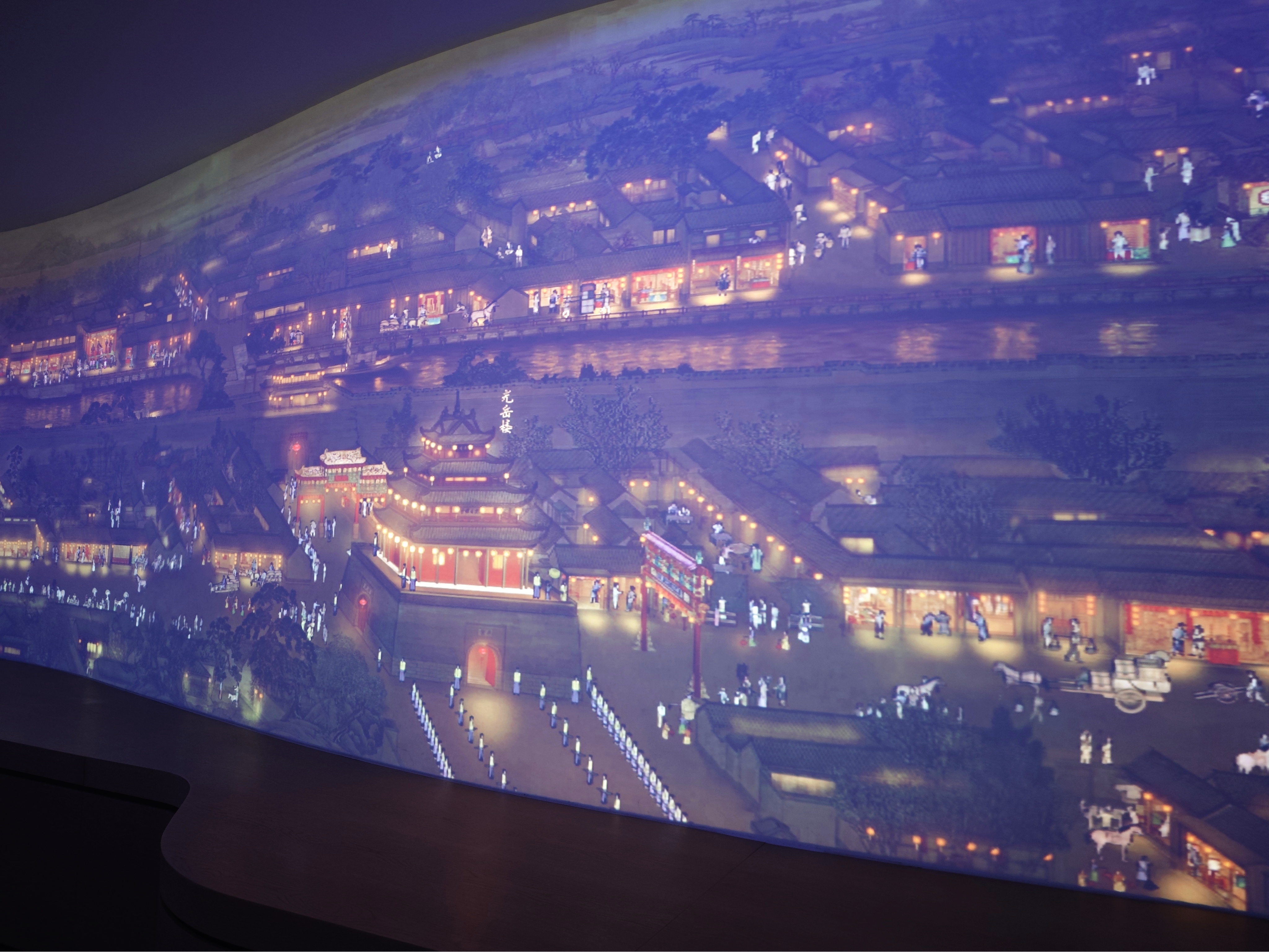 在博物馆的展厅中,一幅巨大的电子屏幕引起了大家的注意。屏幕上,运河沿线劳动人民的生活场景如一幅超长画卷缓缓展开,生动展现了运河文化的历史变迁和人民生活的丰富多彩。