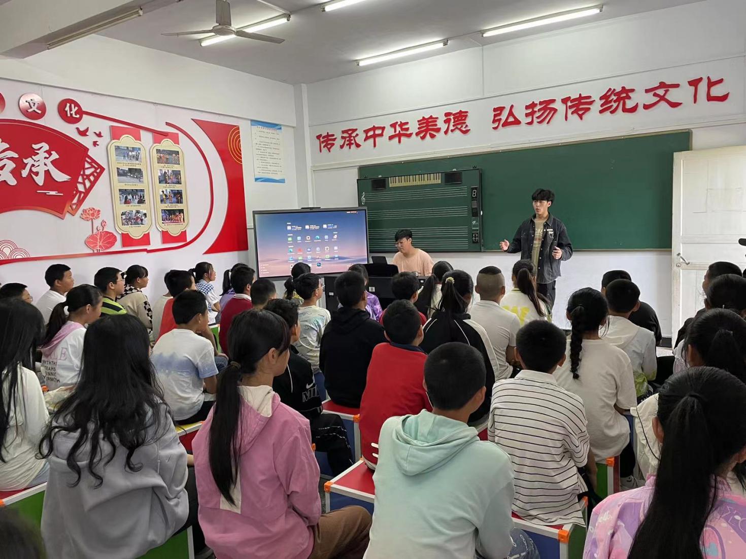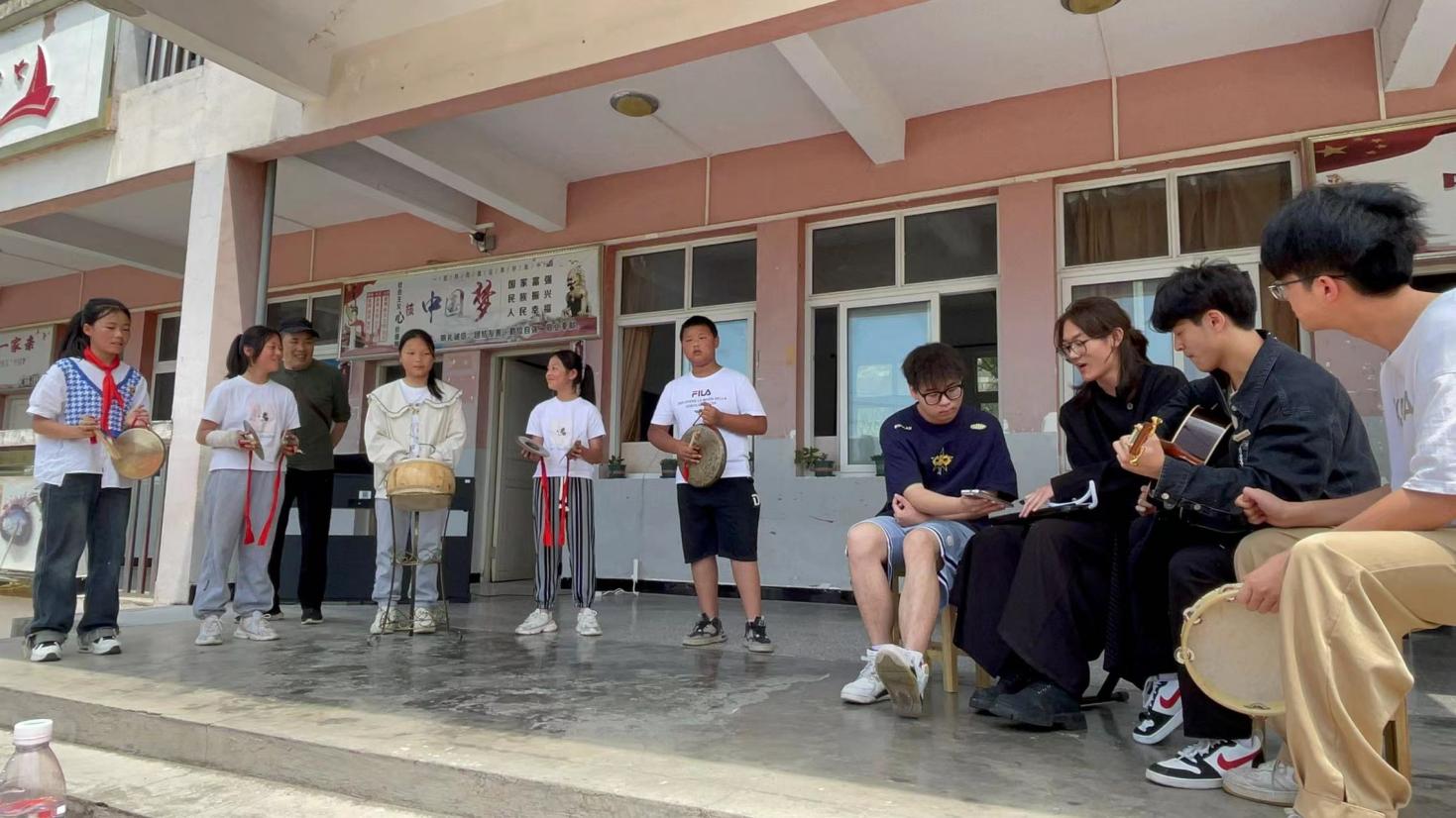 “野径寻血虽苦路,寒窗数载也皆欢”,山区的孩子们求学本就是难事,但是没有任何事情可以熄灭鹤峰县白果村孩子们的求学热情。白果村经历了近十年的建设,马路建好了、教学更优了、网络开放了、饮食丰富了。5月16日,恩施小组师生一行27人前往白果村小学进行交流学习。一下车,我们就被这所乡村小学周边的景色吸引,小学后是几座高耸的山峰,听校长介绍,这座山叫将军涯,是当年贺龙元帅。进入音乐教室,我们给白果村小学六年级的孩子上了一节专业又生动的音乐课。课后正好赶上孩子们开展活动,于是我们登上临时搭建的舞台,从老师的角色转变为演员,为小朋友们表演了节目,随着台上台下积极的互动,我们很快就和小朋友们打成一片。
