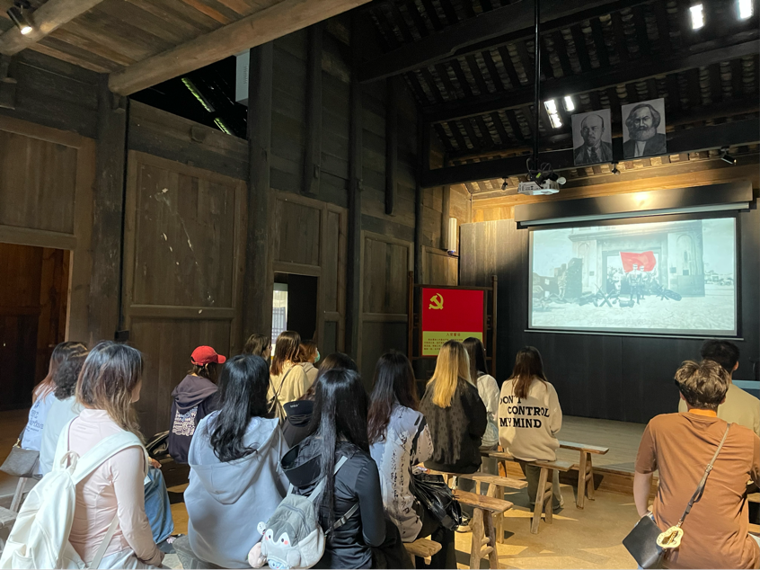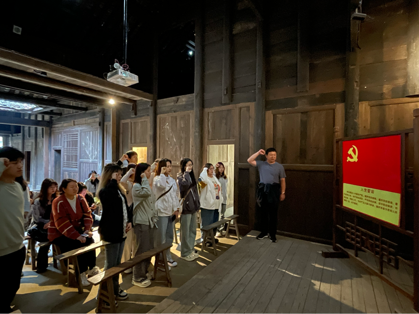 在纪念馆内,同学们参观了苏维埃政府机关旧址和保存较好的18栋民居建筑,感受“家家驻红军、户户是房东”的军民鱼水情。在放映厅,同学们观看了恩施州红色教育纪录片,体会从巴人到现代恩施土苗儿女献身为国的碧血丹心。结束观影后韩隆政老师带领全体党员和入党积极分子重温入党誓词,感受红色温度、继承先烈遗风、赓续红色血脉。