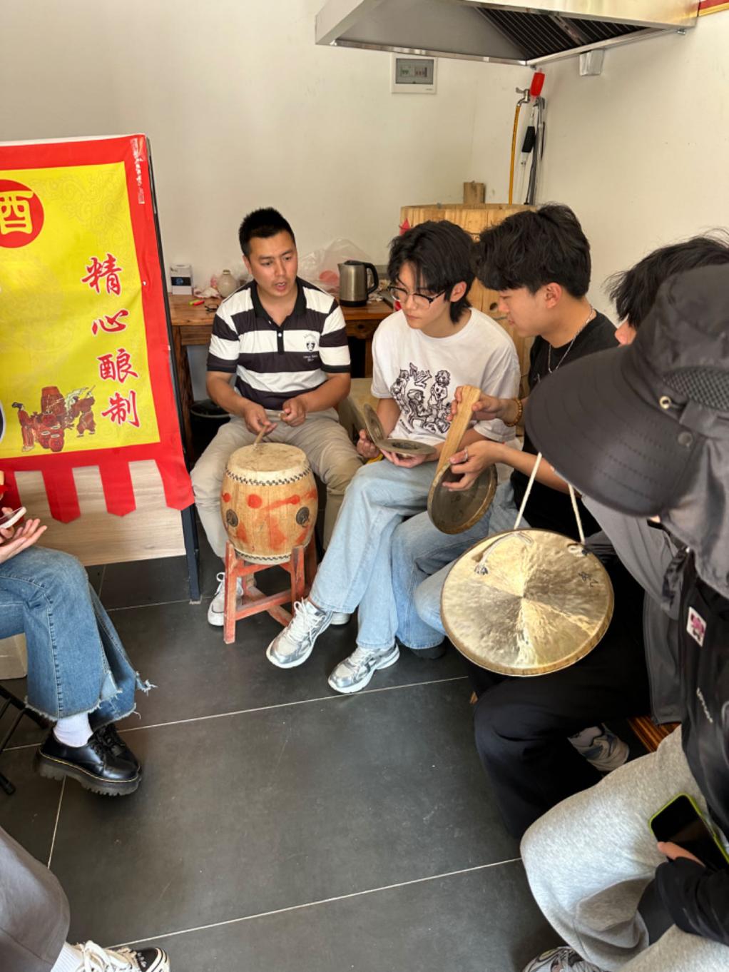 下午我们来到了九资河镇上听肖老师讲课,老师讲到由于没有市场,所以缺少唱东腔戏的新兴人才。到目前,这个镇上只有肖老师和一位80岁的老先生,还在坚守这项文化。东腔戏是罗田大别山地区的戏曲,在不同的地域文化差异之下,会有不同的感动,会根据个人喜好,对人物的理解而唱,只要合乎情理就可以。东腔戏属于黄梅戏和京剧的前身,京剧中有好多是罗田的特色。比如说,“我”这个字在东腔戏的发音中,很像罗田话的发音,也有好多拥有武汉话中的发音,具有汉剧的元素。老师为我们展示了锣鼓,并给我们进行现场教学。