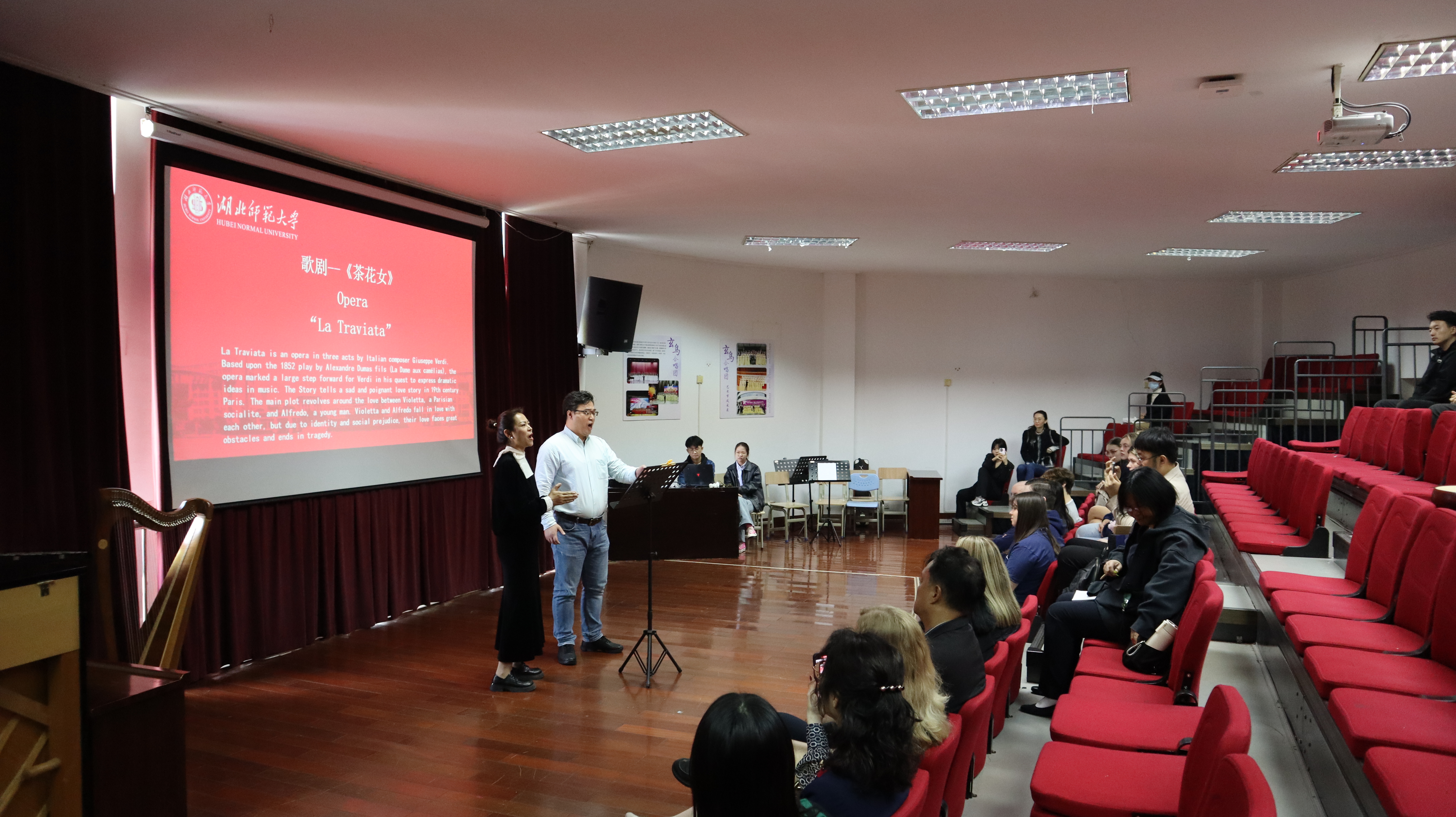 学术交流沙龙由来自我院优秀师生展演的歌剧《等着我亲爱的人》、《茶花女》,民族管弦乐曲《云想·花想》拉开序幕。再由奥斯特大学艺术团成员展演的戏剧《三组组曲》、歌曲《肖恩奥里亚达悲歌和爱尔兰快步舞》、爱尔兰和阿尔斯特苏格兰民歌-《夏日最后的玫瑰》、《离别的玻璃》、《举起翅膀》展开探讨。