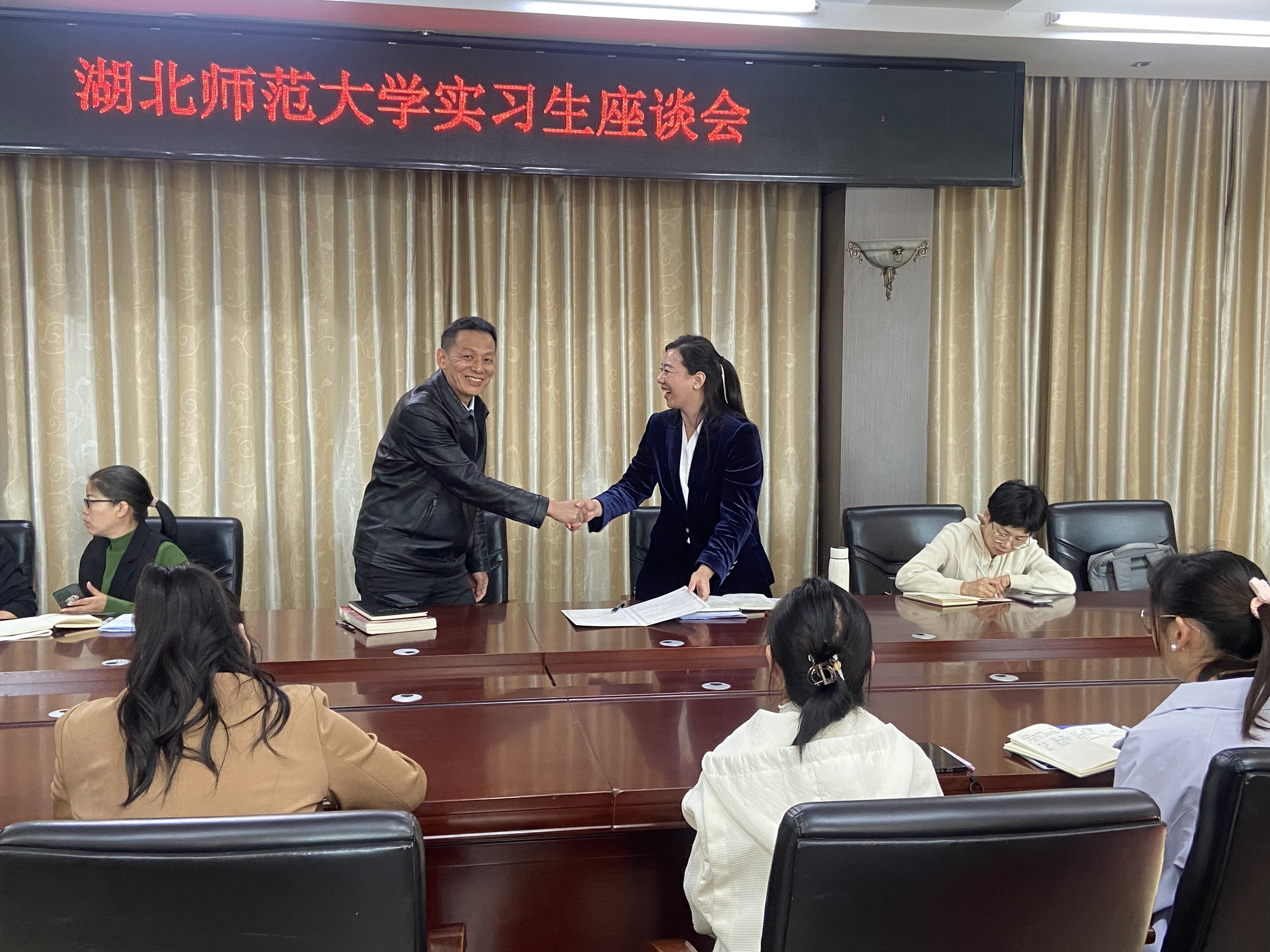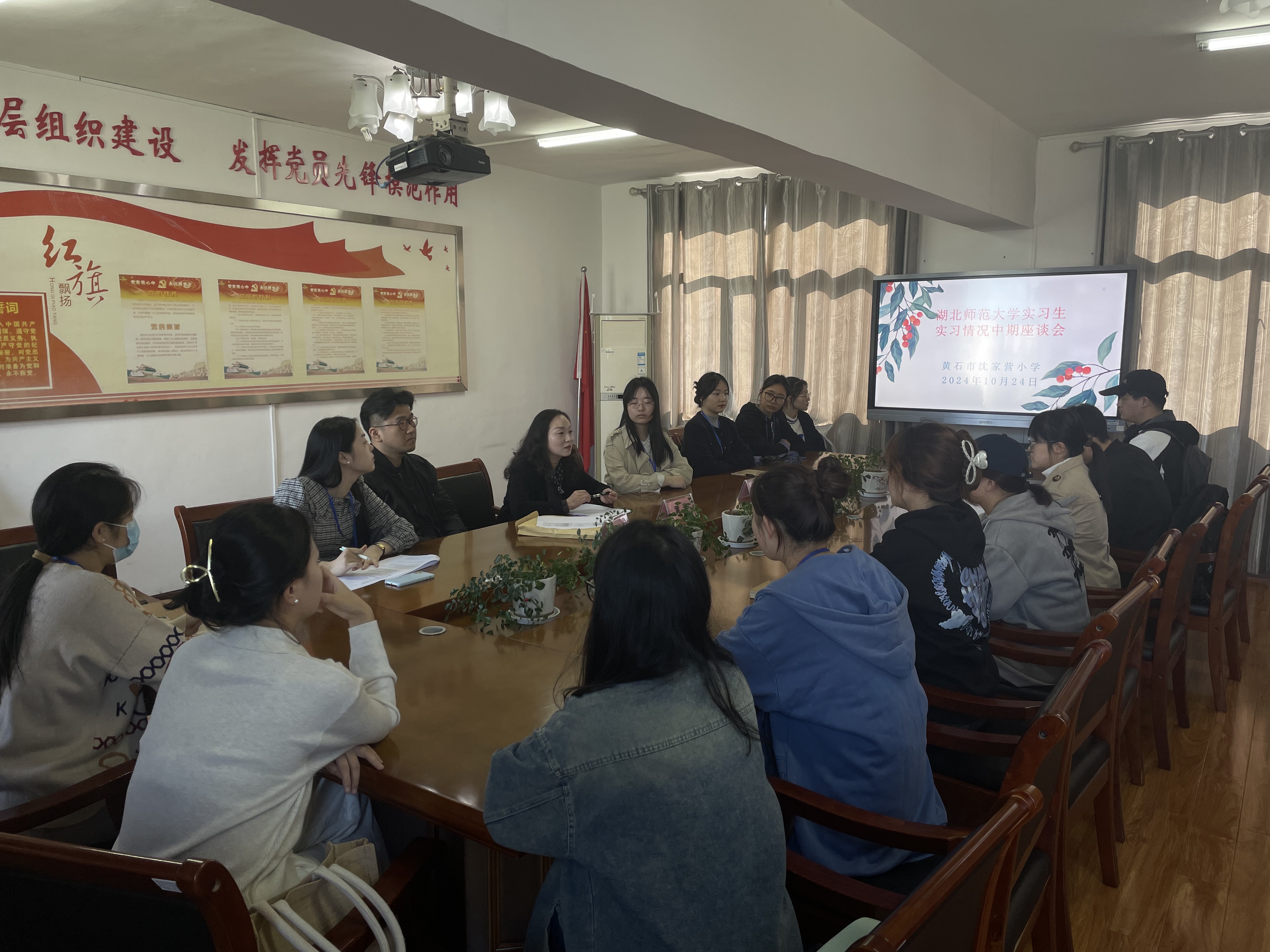 为加强实习生的实践指导和教学质量保障,2024年10月24日—11月1日,由黄芳副院长、杨娇副书记带队,我院教师前往沈家营小学、花湖小学、黄石市艺术学校、黄石育英高中、黄石市第二中学滨江学校、大冶聚龙高中、大冶一中以及大冶华中学校开展教育实习检查工作,对2025届实习生的实习工作情况进行全面检查,并与实习单位签订教育实习基地协议书,为实习指导老师颁发聘书,同时邀请各实习单位的优秀校友深度探讨实习、就业和育人工作。