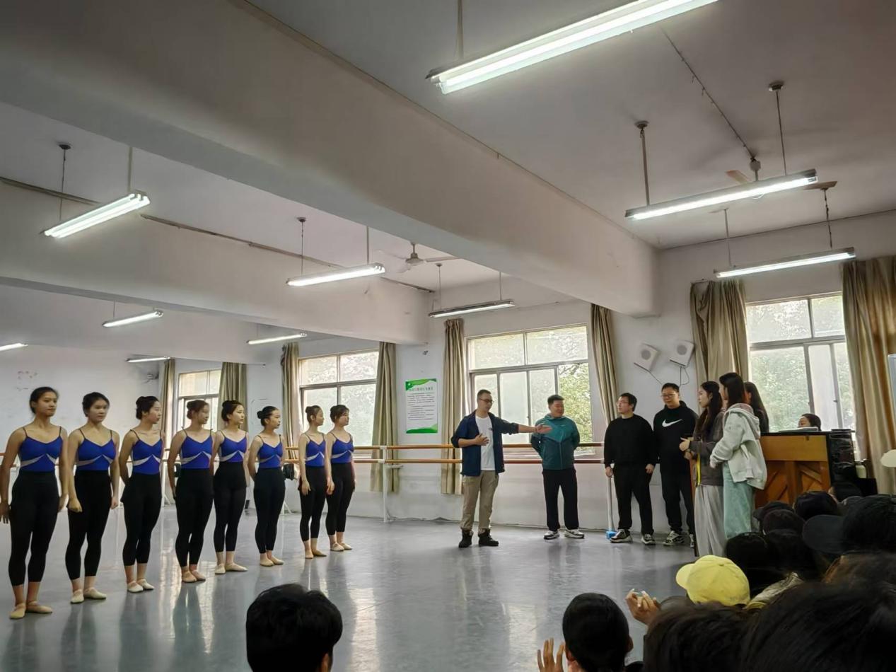 第二个是交流环节。学校周凯老师、彭超老师和程石平老师对见习研习工作进行了整体安排部署,强调同学们要深入体验舞蹈教师各方面的日常教学工作,跟随见习学校老师学习讲课方式、教姿教态、教学方法等,沉浸式进行听课观摩,进一步缩短课堂和现实工作的距离,增加实践经验,并鼓励同学们在实践中拓宽视野,积累经验,为未来从业打好基础。