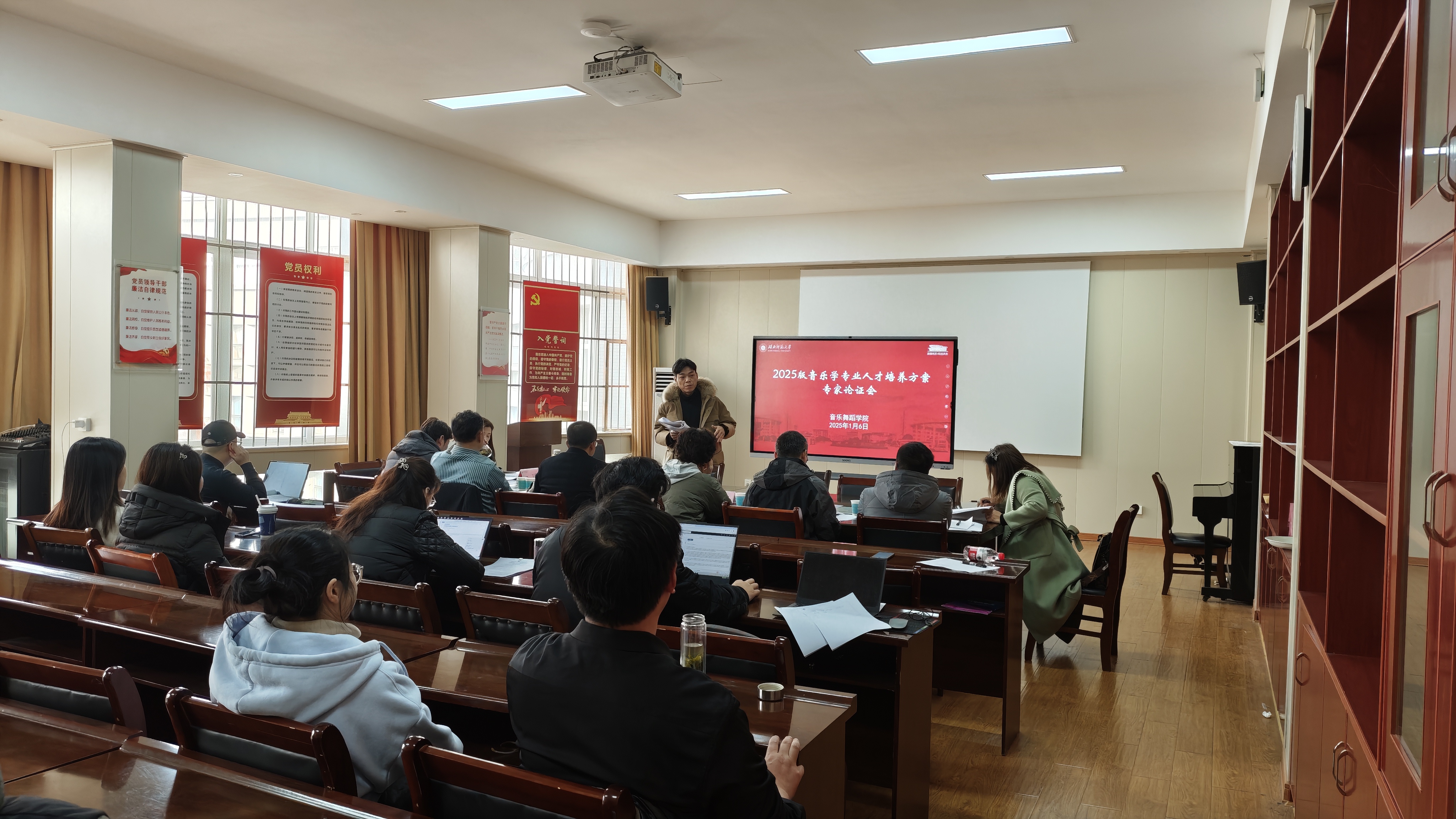 为全面深化教育教学改革,完善人才培养体系,落实好2025版人才培养方案修订工作,2025年1月6日,我院组织开展了2025版人才培养方案专家论证会。本次论证会邀请了黄石港区教育局党组书记、局长李学,黄石第六中学校长赵川,武汉市教育科学研究院教研员李克玲,黄石市群艺馆馆长陈芳,华中师范大学音乐学院原副院长王笑合,阳新县教育局教科院副院长马志前,黄石十六中教联体副校长汤钦雯,黄石歌舞剧院副院长王琇,黄石市教育局教研员罗立琦,黄石八中一级教师宋碧,柏聆琴行总经理、黄石市音乐家协会理事李望,伟德国际1946bv教学督导吴瑞霞、王卫东。周友良院长、黄芳副院长以及各教学系部主任、教师代表参加了会议。