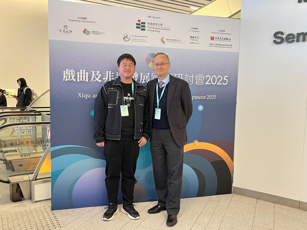 2025 年 2 月 22 日至 24 日,由香港教育大学主办的「戏曲与非遗发展国际研讨会 2025」在香港西九文化区戏曲中心召开,我院23级音乐硕士研究生张宇同学受邀参加,聚焦大会「透过发展戏曲与非遗,促进中华文化在全世界传播」主题,展现湖师风采。