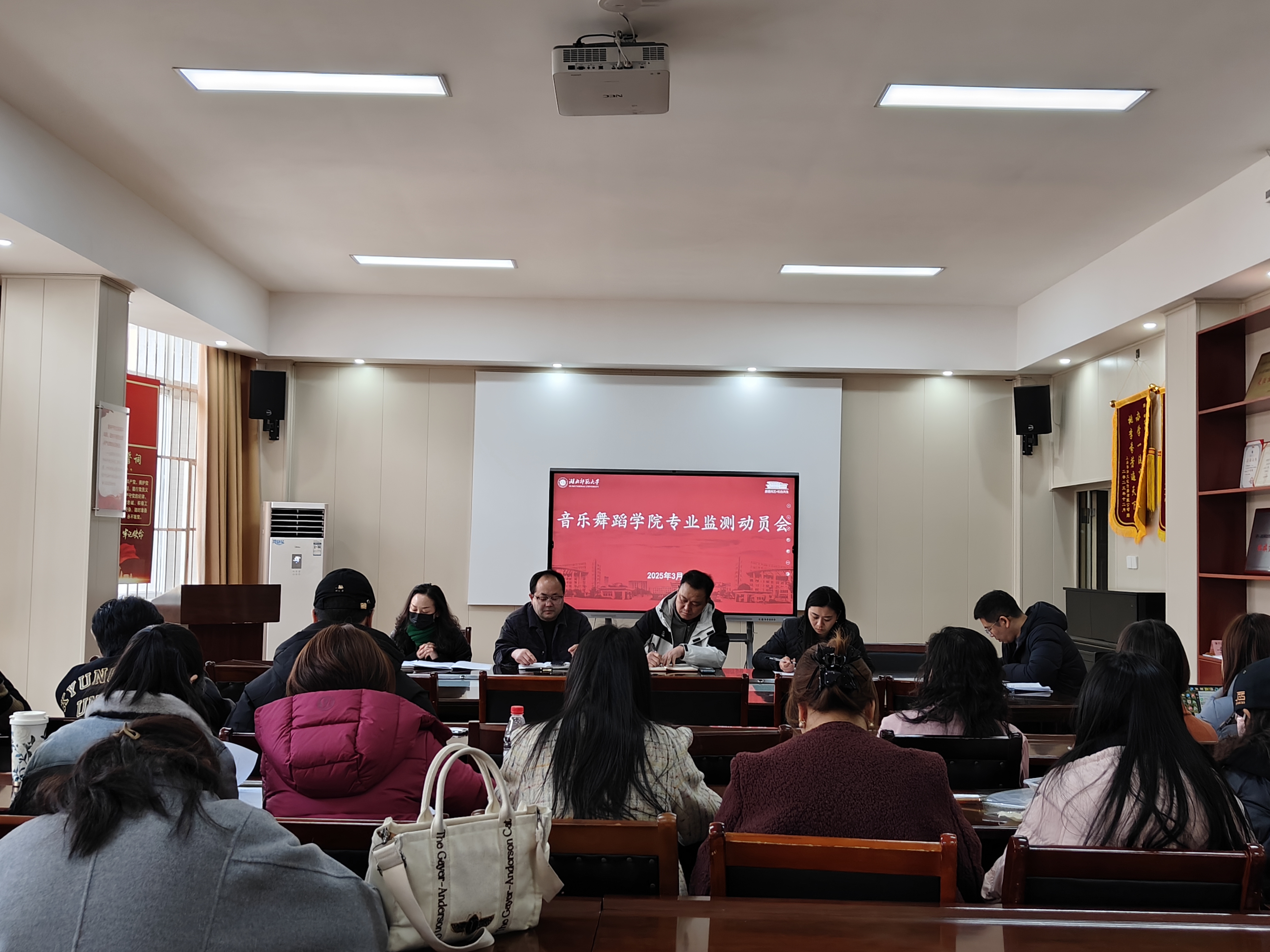 2025年3月6日下午,音乐舞蹈学院在13311召开专业监测评估动员会,全体教职工老师参加了本次会议。