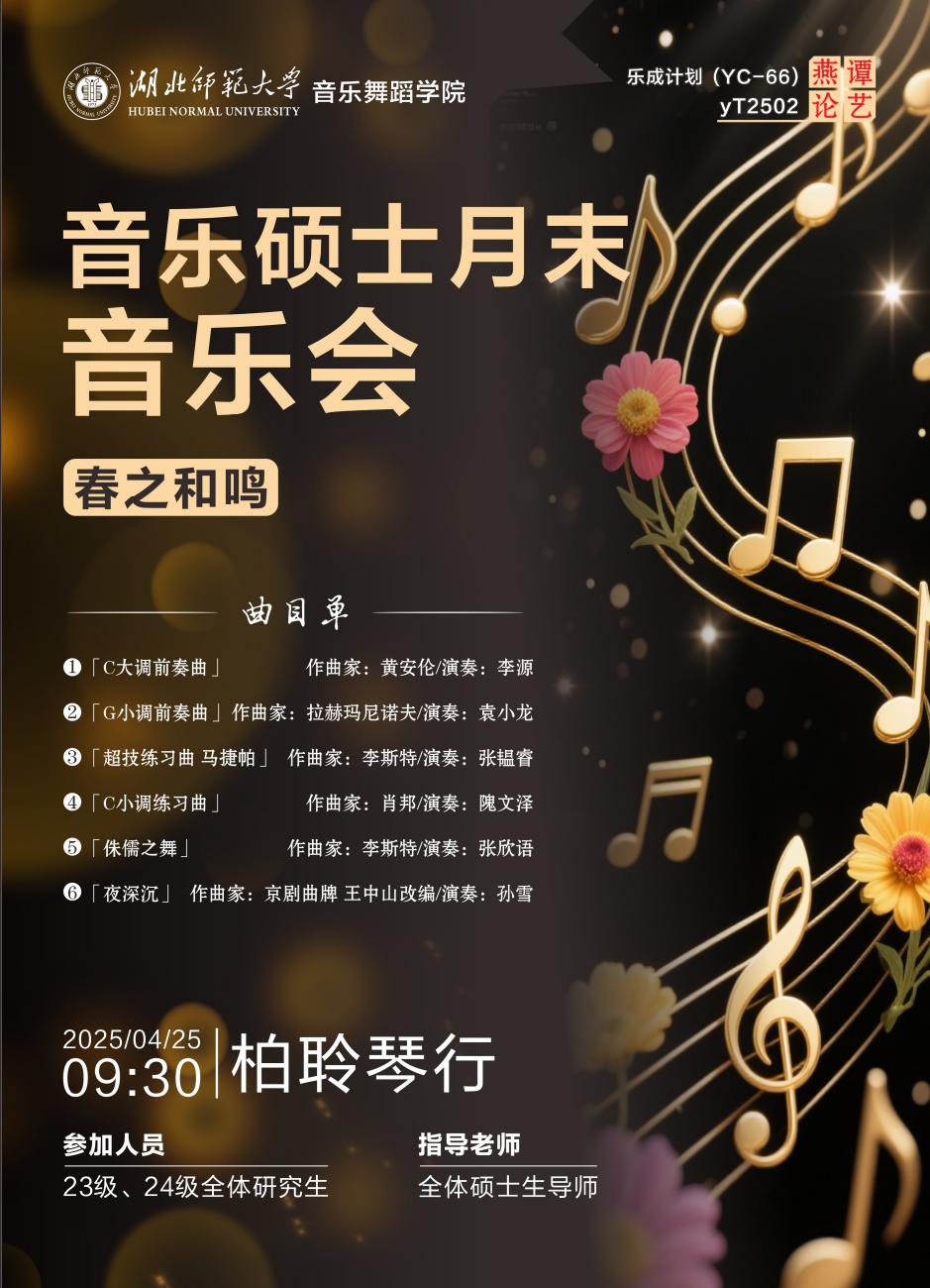 4月25日上午9:30,由bevictor伟德国际1946主办的“春之和鸣——音乐硕士月末音乐会”在柏聆琴行拉开帷幕。bevictor伟德国际1946黄芳教授、韩莎副教授莅临现场,与23级和24级研究生共同沉浸于这场融合古典与民族、跨越时空的音乐盛宴。