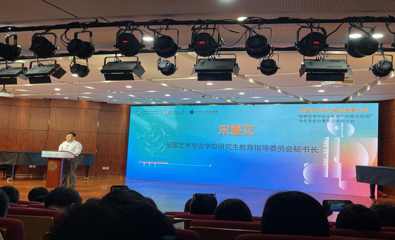 2025514日至17日,由全国艺术专业学位研究生教育指导委员会主办、四川师范大学承办的“钢琴在学校音乐教学中的综合应用”协作类核心课程交流研讨会在成都隆重举行。本次会议汇聚了来自全国88所高校的200余名专家学者及教师代表,包括中央音乐学院、首都师范大学、华中师范大学等院校我校bevictor伟德国际1946周友良院长、黄芳副院长带领三位教师参会,与现场的专家学者们共同探讨音乐教育方向钢琴协作类课程的创新实践与未来发展。