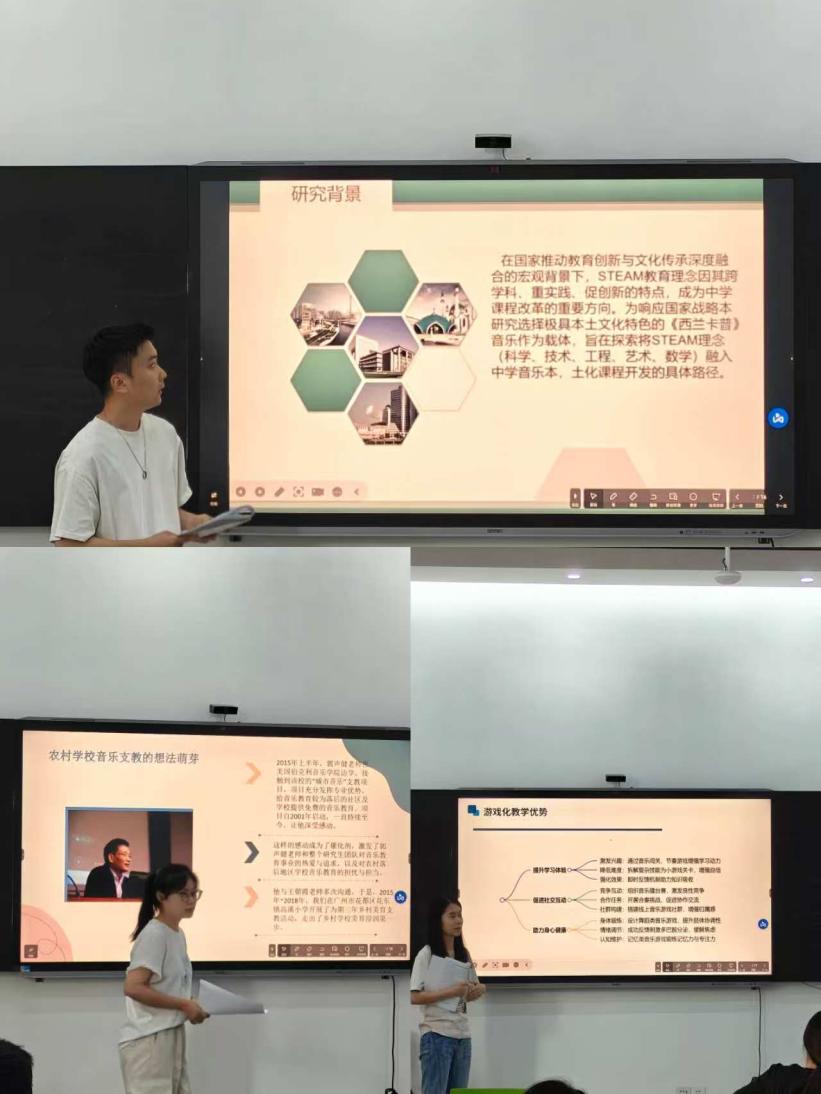 24级音乐教育方向研究生刘磊以《基于STEAM教育理念的中学音乐本土化课程开发》为题,以恩施土家族传统剧目《西兰卡普》为载体,结合“新课标”内容,开发了本土化的单元教学内容,以实现传统音乐文化的校园传承与创新性发展。