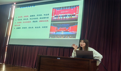 培训会议伊始,辅导员老师付思墁通过问答的方式带领同学们认识了宣传工作的重要性。接着付老师从校园新闻的分类、通讯稿撰写、摄影技巧和注意事项等四个方面展开培训,并通过案例对比帮助同学们梳理了新闻稿撰写常见问题和提升方法。