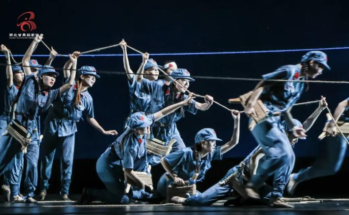 作品以抗战时期通讯女兵为主角,讲述她们在战火中以身为线、拼死保障战场通讯的英勇事迹,展现女性在一线战场中不畏艰险、忠诚无畏的精神。舞蹈通过“战火中布线”“最年轻的她”“让我去”等篇章,采用刚柔并济的舞蹈语汇,刻画女性战士在生死之间完成使命的壮举。舞台上,线绳与光影交织,映射出血与火的洗礼,也象征革命信仰的传承。最后一幕,小战士紧握沾血电话线,凝望远方,展现“人在线在”的钢铁意志。整部作品传递出新时代对红色精神的礼赞与接续,让“感党恩、跟党走”的信念在舞姿中深情回响。