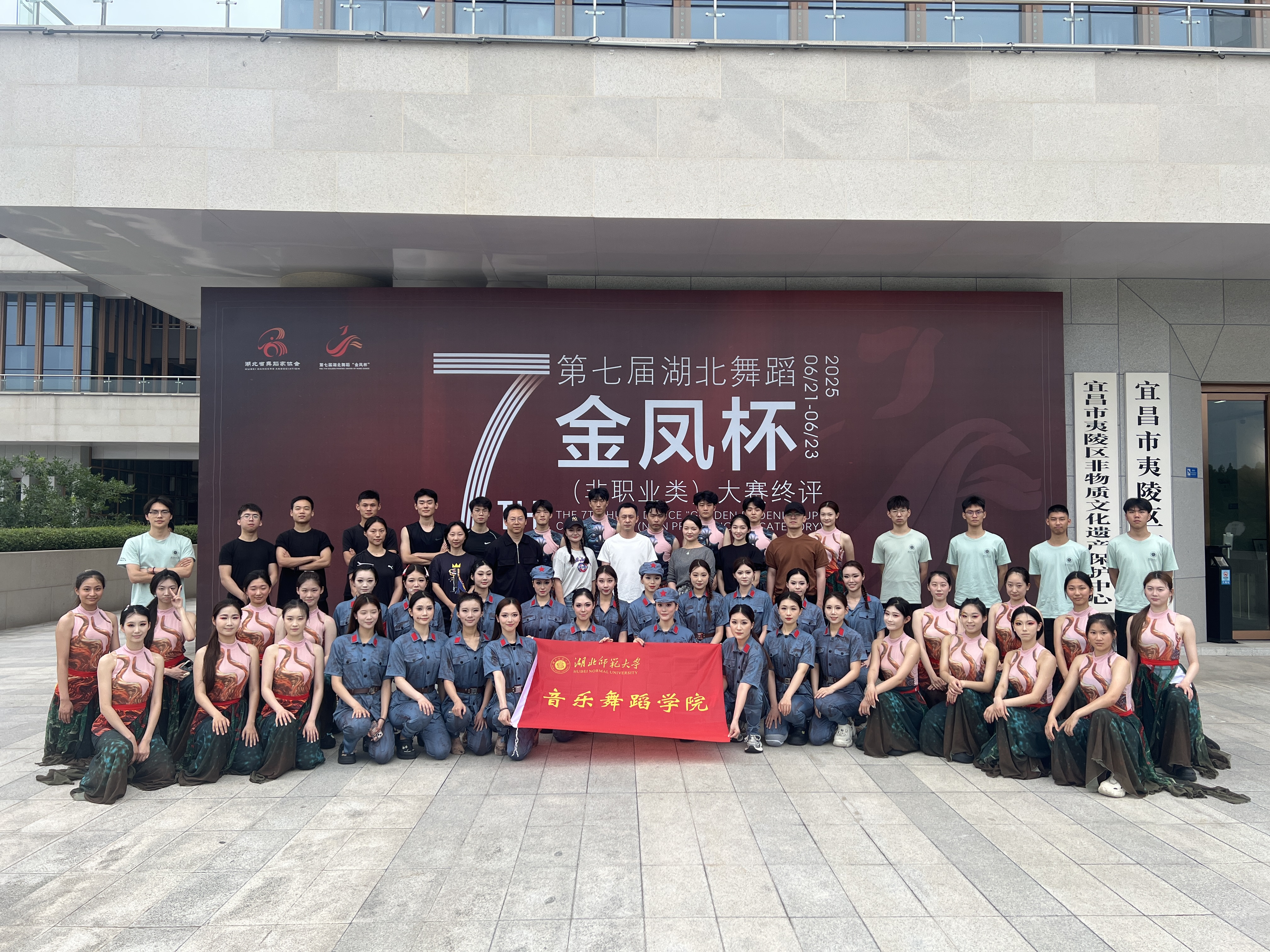 由湖北省文学艺术界联合会、湖北省舞蹈家协会主办的第七届湖北舞蹈“金凤杯”(非职业类)大赛终评2025621日至23日在宜昌夷陵文化中心剧场盛大举办。经过复评严格选拔,来自全省的29部优秀作品脱颖而出,汇聚决赛舞台。bevictor伟德国际1946舞蹈系选送的3部原创舞蹈作品成功入围终评,并在终评现场精彩亮相、载誉而归最终群舞《青铜·焰》斩获作品一等奖、群舞《烽线芳华》斩获作品二等奖、独舞《渊阳溯生》斩获表演二等奖。