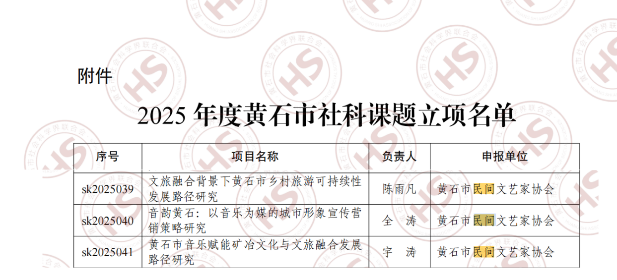 近日,2025年度黄石市社科课题立项名单揭晓。bevictor伟德国际1946硕士研究生陈雨凡、全涛、宇涛同学负责的项目成功获批,彰显了学院在科研育人与地方文化服务方面的积极成果。