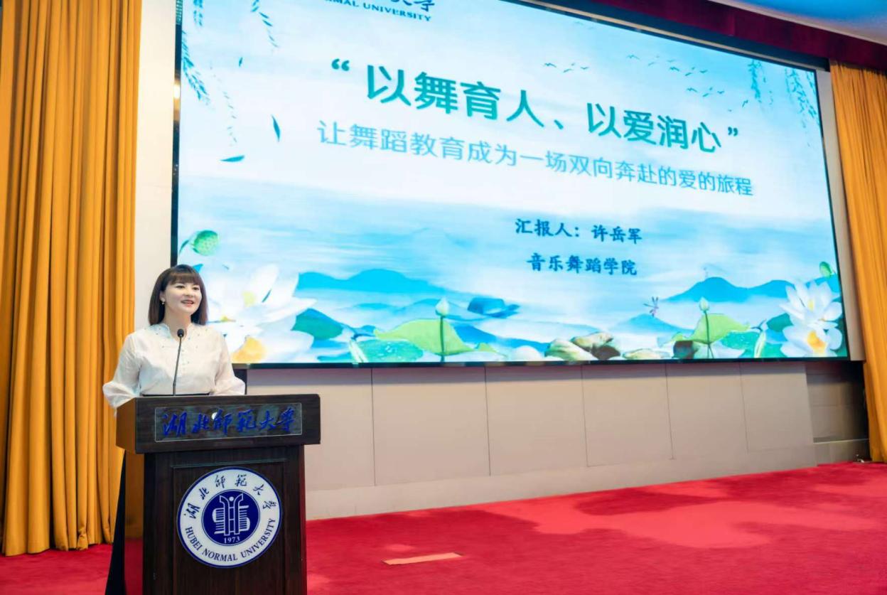 表彰大会上,许岳军老师还作为优秀教师代表登台发言。她结合自身多年的教育教学经历,以《以舞育人、以爱润心--让舞蹈教育成为一场双向奔赴的爱的旅程》为题,分享了她在舞蹈人才培养中的动人故事与深刻感悟,从课堂教学的细节打磨到舞台实践的悉心指导,从专业技能的精准传授到艺术品格的用心塑造,字字句句彰显着人民教师的责任与担当,引发全场热烈共鸣。