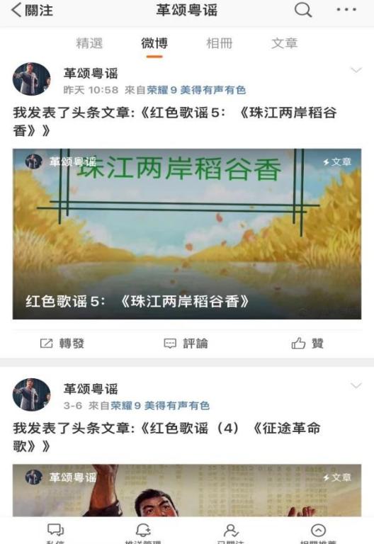 为扩大红色音乐文化宣传广度,团队借助各类网络平台推送五邑红色歌谣。建立了“革颂红谣”等几个微信公众号和微博号,推送同学们自己弹唱﹑表演制作的五邑红色歌谣音乐﹑歌谣故事,得到了很多人关注。在微信公众号上还专门为小朋友设置了红色童谣栏目,带小朋友诵读吟唱红色童谣,让小朋友从小接受红色教育。
