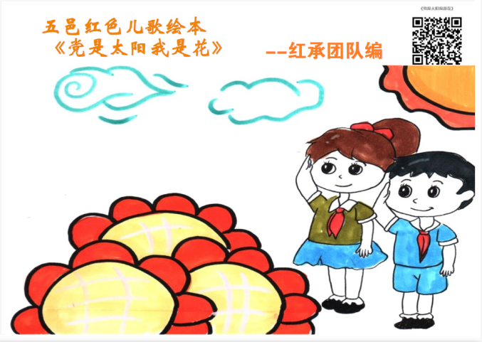 红承团队中音乐专业的同学挑选曲谱已失传的五邑红色歌谣进行一些创作尝试,用所学的音乐专业知识为歌词创编旋律,并将创作的歌曲自弹自唱做成音频放到公众平台上,让更多人知晓五邑红色歌谣。为加强红色歌谣文化的国际传播力,方便对外传播,同学们还以五邑红色童谣《我们是红小兵》为实践,改编成英文歌词,配合原曲调弹唱,推送到网络平台上收到很多粉丝点赞。为弘扬红色文化,宣传五邑红色歌谣,团队自编了4本配有扫码音频的原创绘本,还制作书签、工艺品等文化作品到实践基地推广。