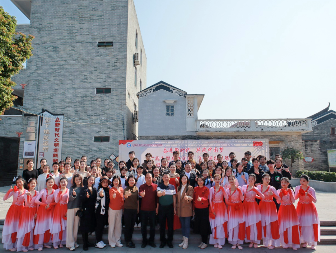 (学生在棠下镇良溪村举办“奋进新时代,共筑中国梦”惠民演出,拍摄:金峰)