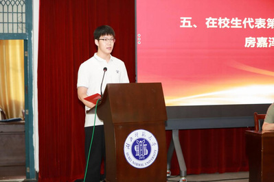 学生会主席房嘉泽慷慨分享其成长心得,以“行动、坚持、责任、相信”四个关键词为纲,有力号召全体新生满怀热忱,在大学新征程中砥砺前行。