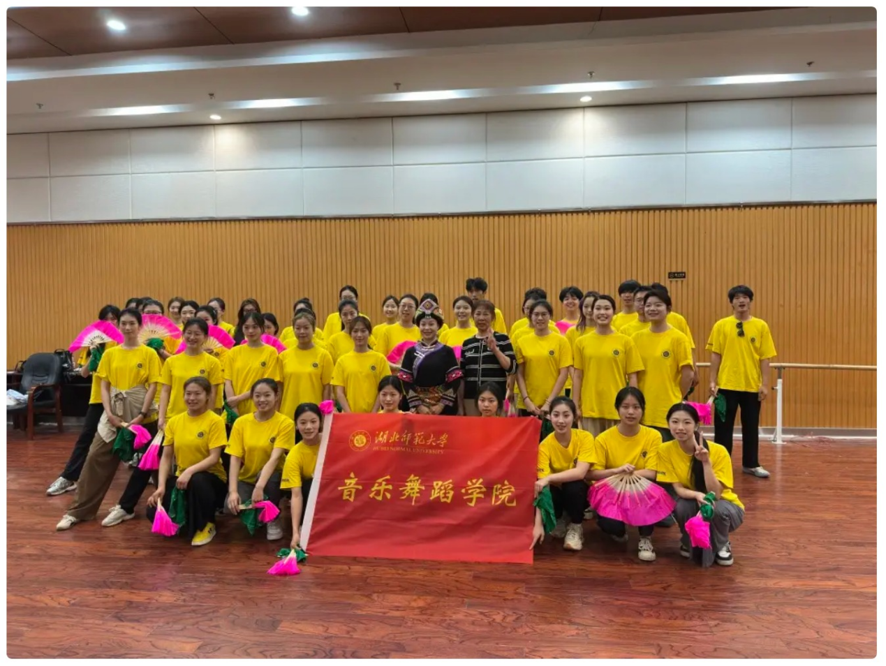 地盘子是鄂西咸丰特色民间舞蹈,集歌、舞、戏为一体,春节时表演,动作丰富,唱词即兴,音乐唱腔多样 ,角色有生旦丑。23级的同学们通过地盘子学习,不仅深入了解非遗文化的历史底蕴与艺术魅力,提升了节奏感和肢体协调性,还在集体练习与成果录制中增强了团队协作能力。在克服舞蹈动作难点的过程中,磨炼了毅力,收获自信,更通过与传承人的交流,深刻感受到民间艺术的匠心传承。