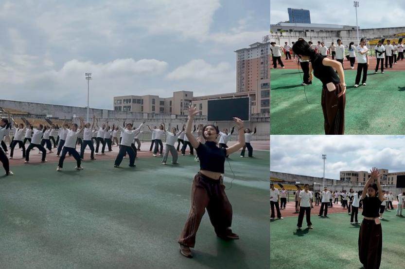 本次田野实践,同学们以《傩・乐》12个核心动作为主进行了学习,在一招一式间感受傩舞的庄重气韵与独特动律。从振臂呼号的苍劲开场,到颤膝祈福的虔诚内敛;从马步挺顿的沉稳有力,到侧首聆神的凝神专注;再到转身摆臂、甩臂绕场、跨步展臂、踮脚巡行,每一组动作都承载着仪式感与文化内涵。伴随着挥袖扫尘、踏步提膝、昂首展臂、搓步旋身的连贯转换,同学们在反复练习中找准发力、控制节奏、规范体态,逐步把握傩舞古朴、肃穆、刚柔相济的艺术特质。从生疏到熟练,从零散到连贯,大家在汗水与坚持中读懂:傩舞不只是肢体表达,更是对天地、先祖与民俗精神的敬畏呈现。